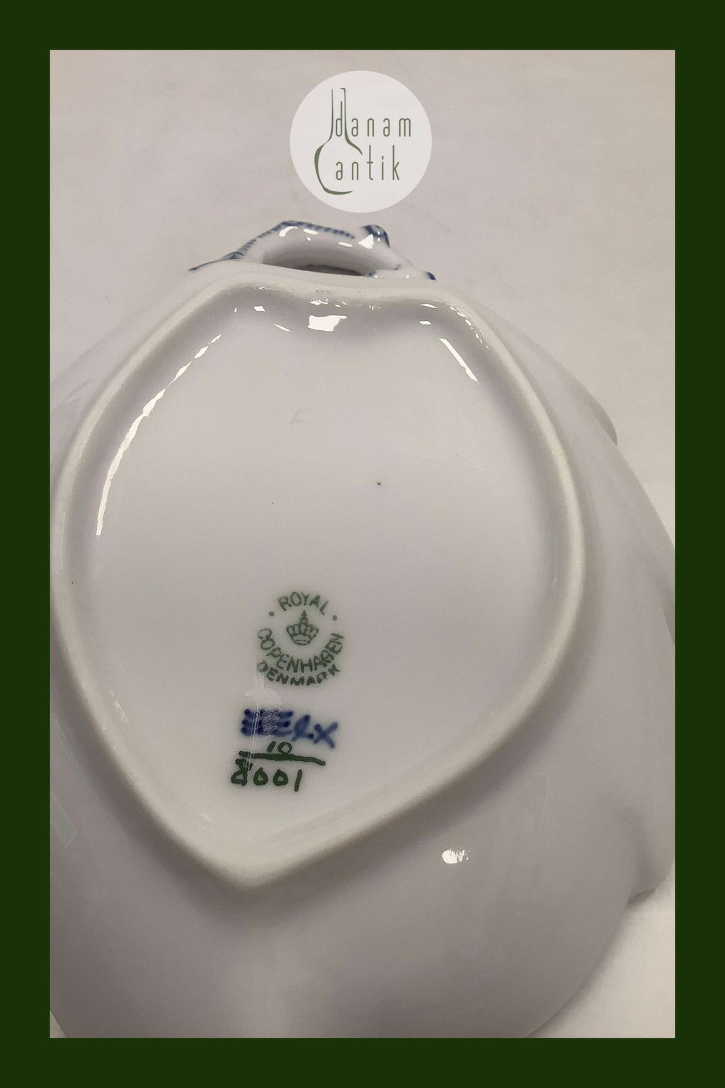 Royal Copenhagen Blå Blomst Flettet Bladformet Skål No 8001. Måler 18cm / 7.09 inch og er i god stand.