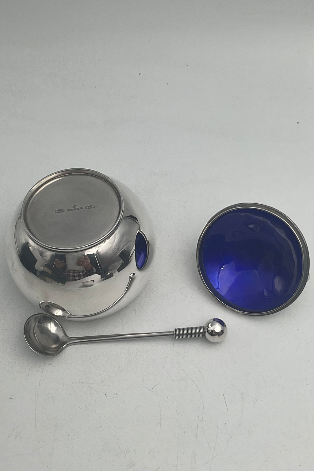 Hingelberg Sterling Sølv Sennep Skål med låg, og ske af Svend Weihrauch