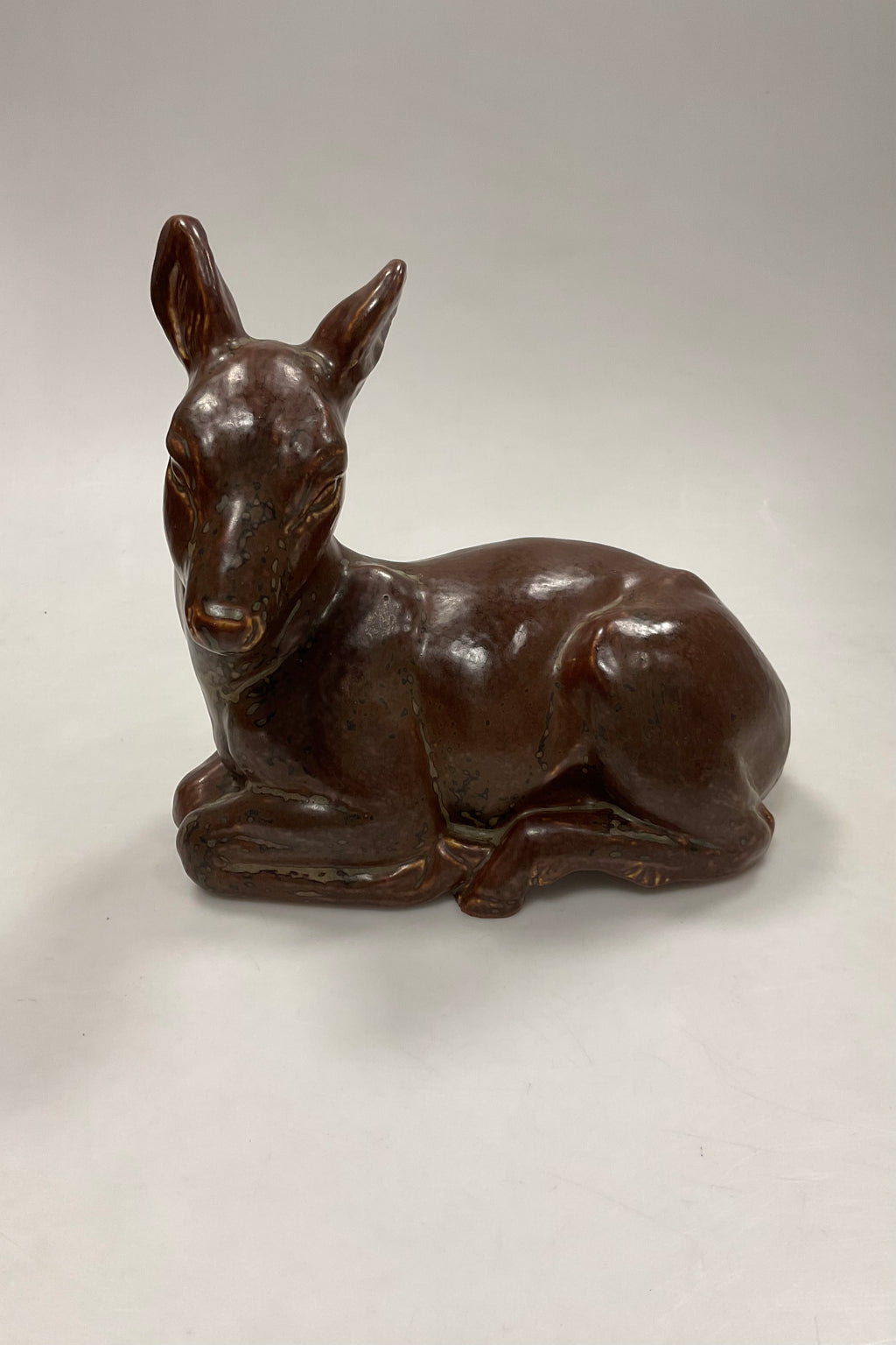 Royal Copenhagen Stentøjsfigur af liggende Hjortekid No 20506. Knud Kyhn. Måler 24 cm(9 29/64 in.)