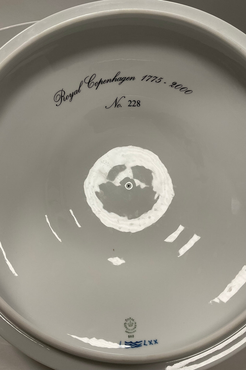 Royal Copenhagen Musselmalet Riflet Stor Jubilæums Punch Bowle No. 189. Måler 35 cm dia (13 25/32 in.) Limited edition No. 228
