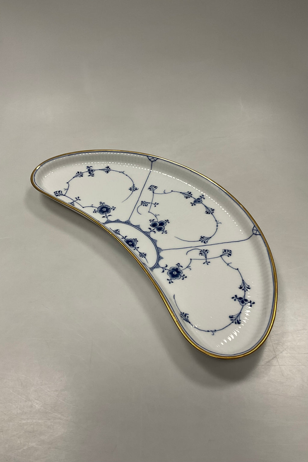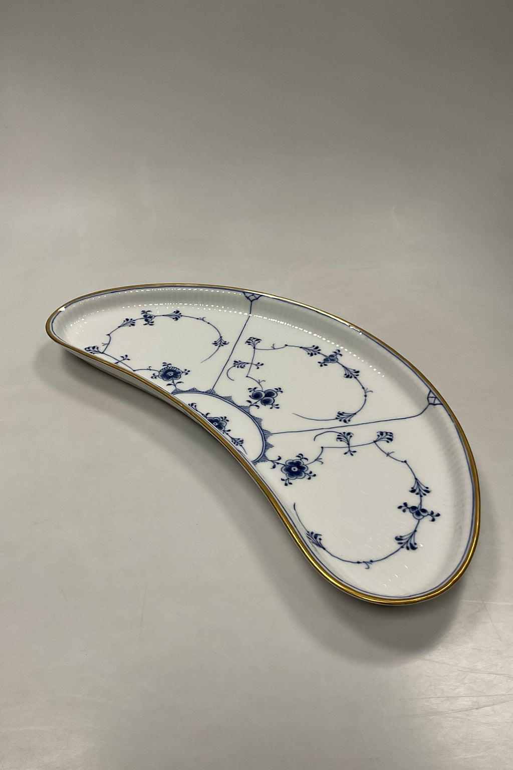 Royal Copenhagen Musselmalet Riflet Halvmåne Fad med Guld No. 402