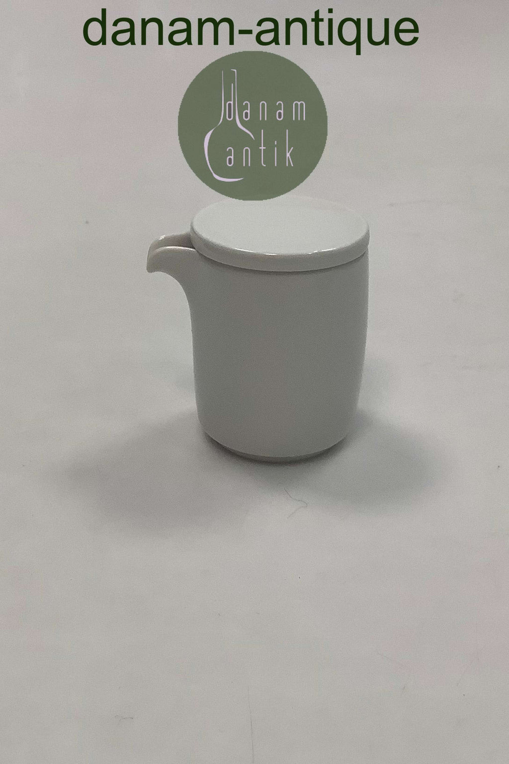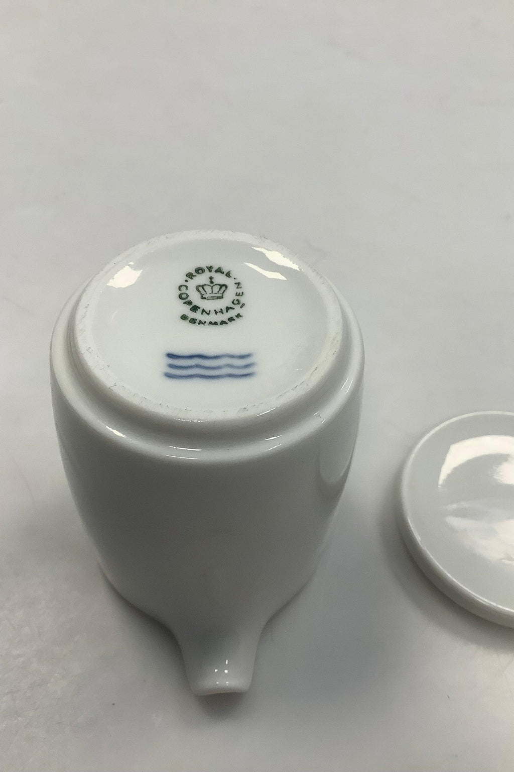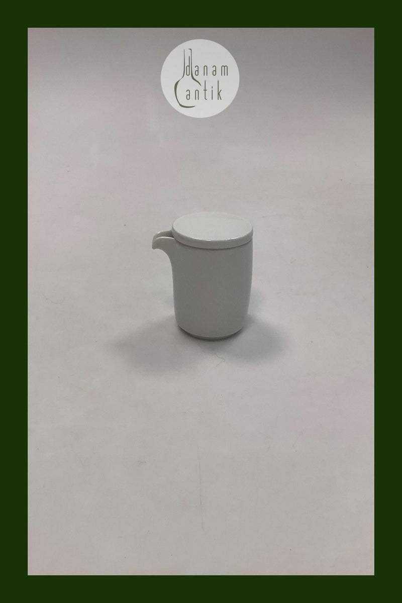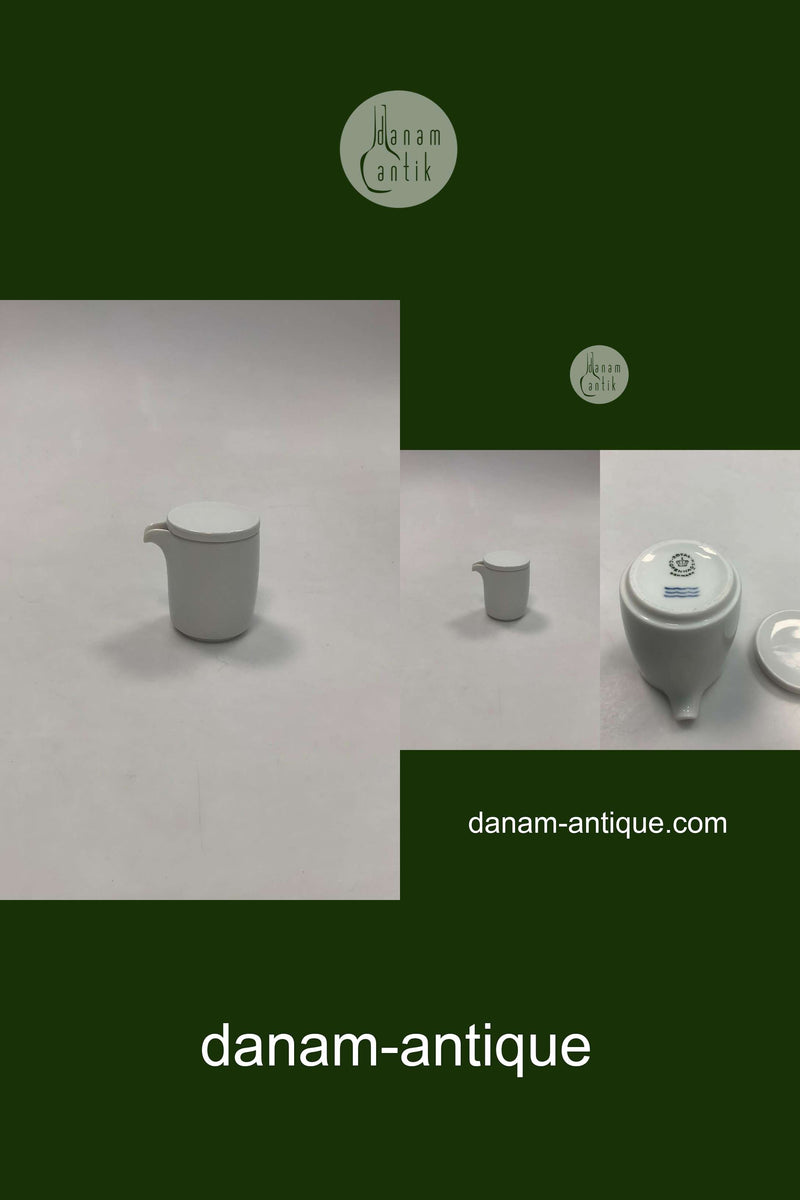 Royal Copenhagen Hvidpot Flødekande med låg. Designet af Grethe Meyer. Måler 6,5cm / 2.56 inch