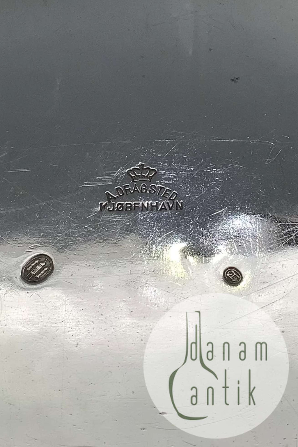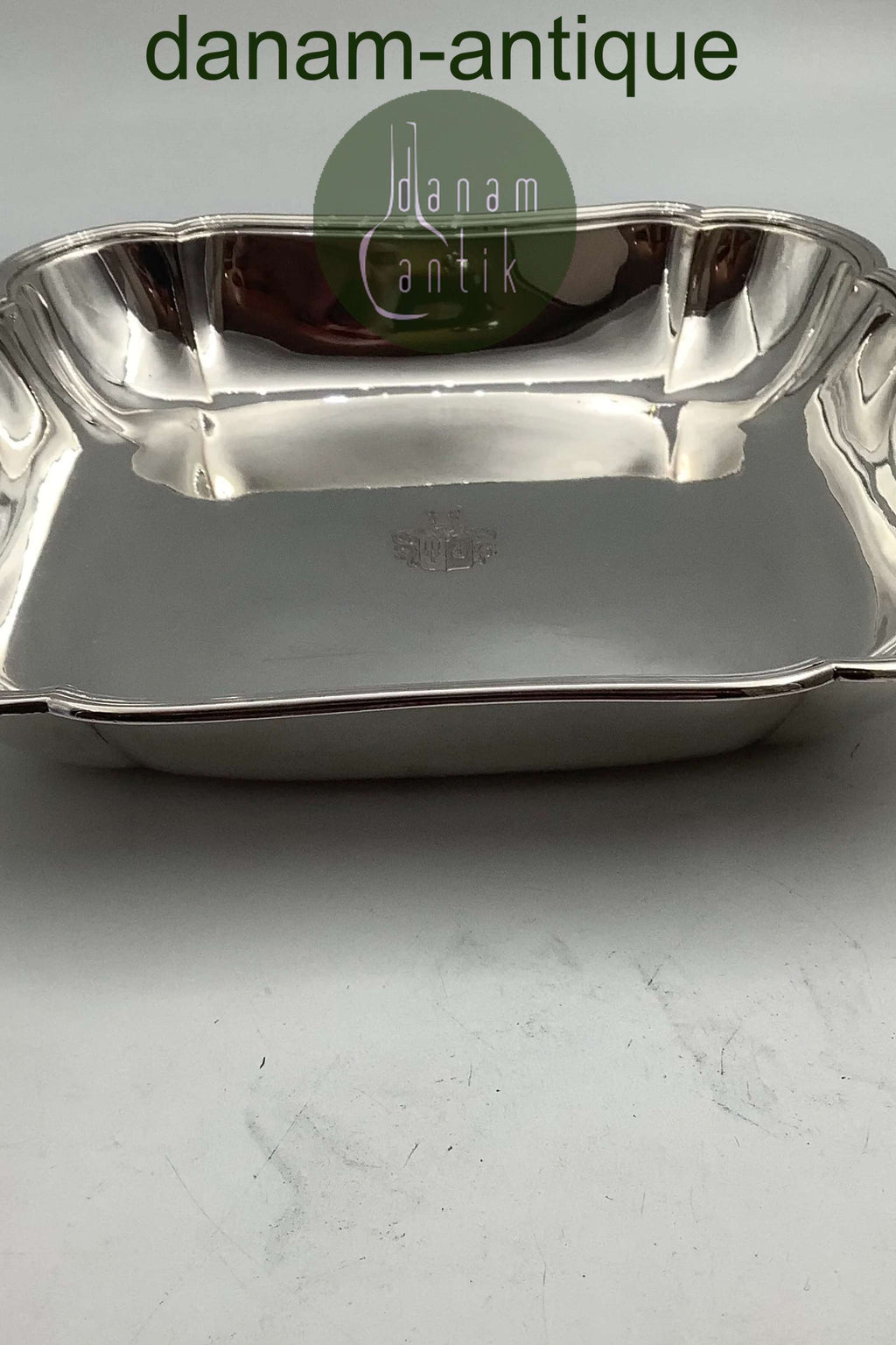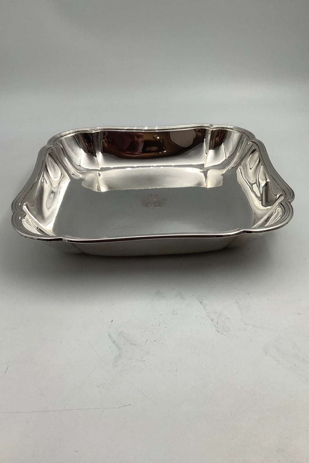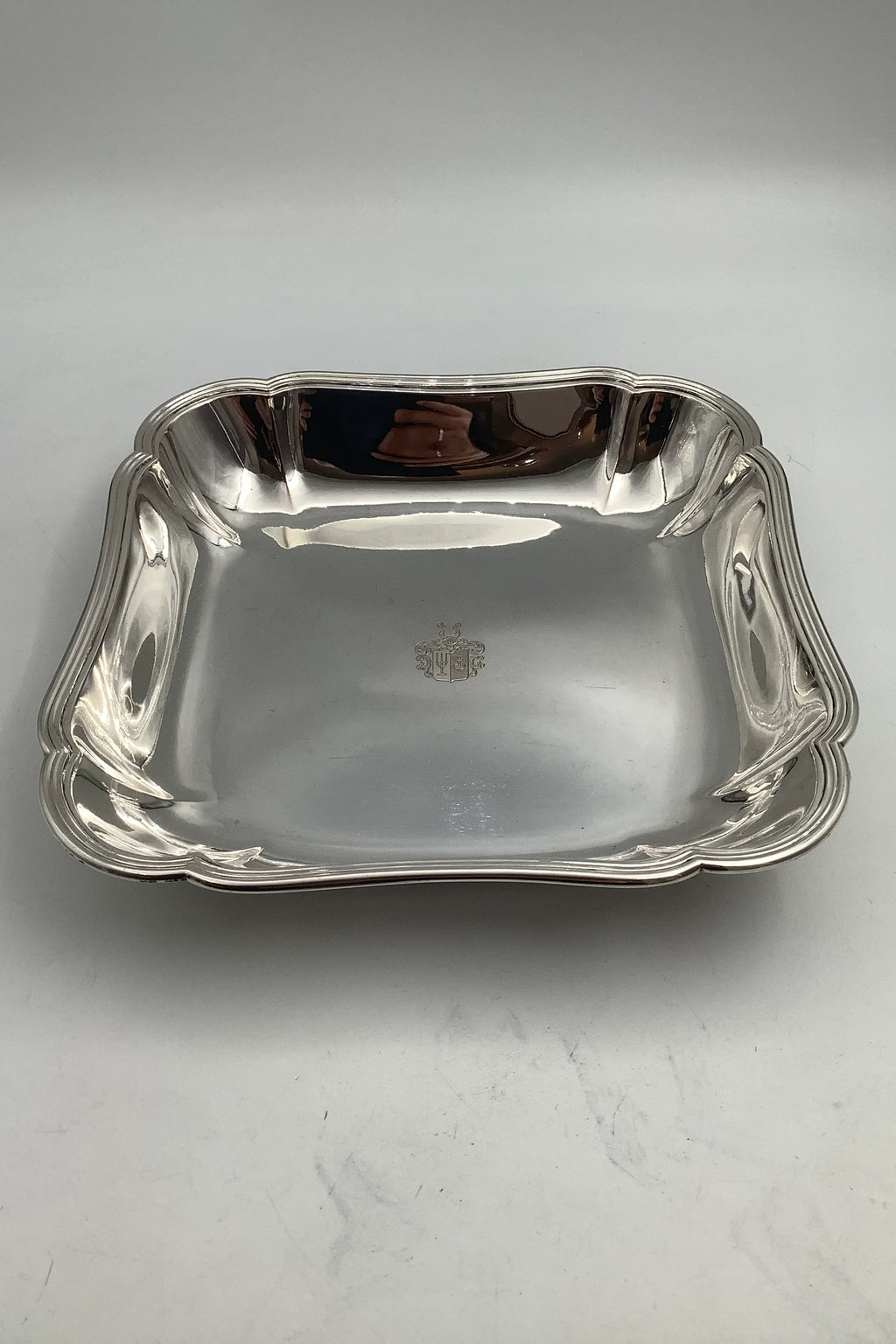 A. Dragsted Sølv firkantet skål fra 1911 med våbenskjold
