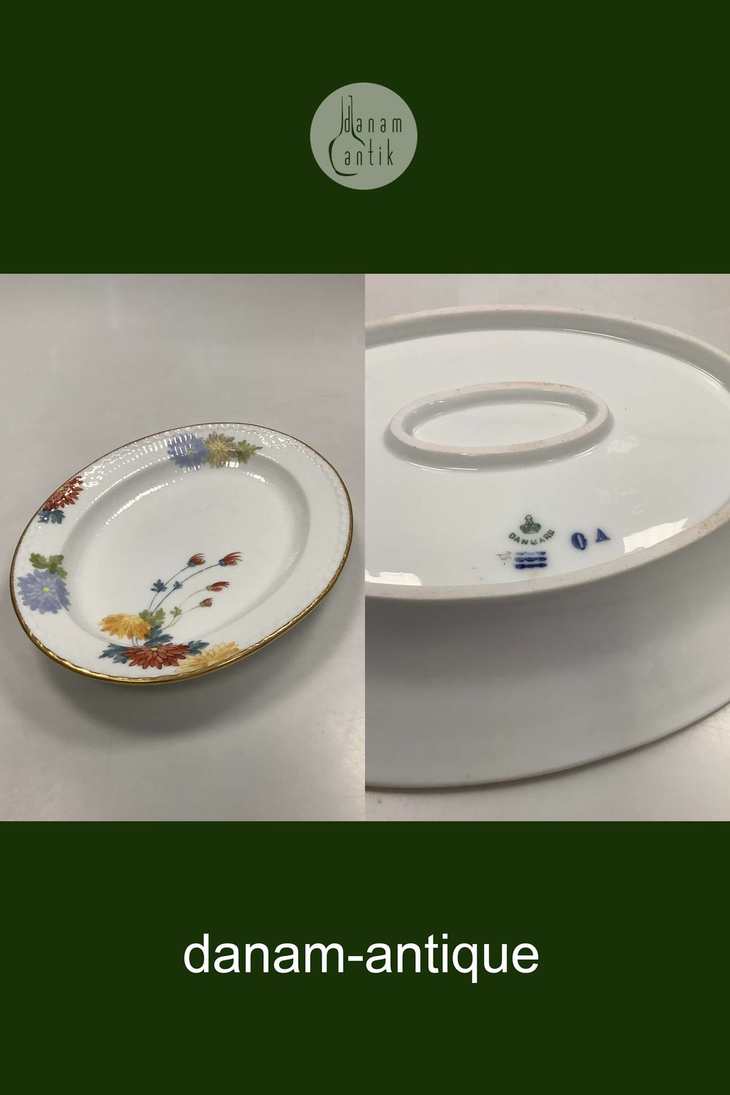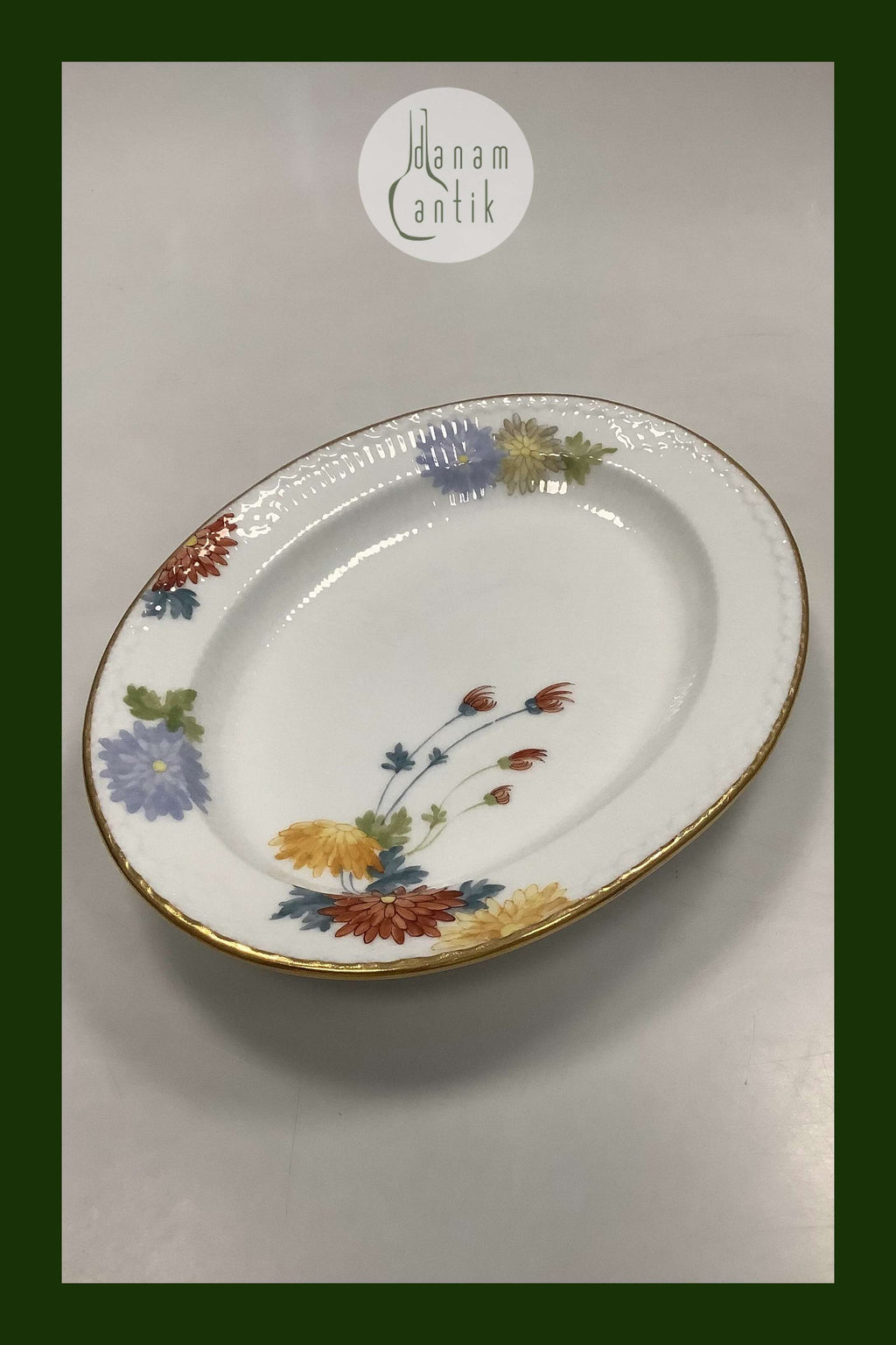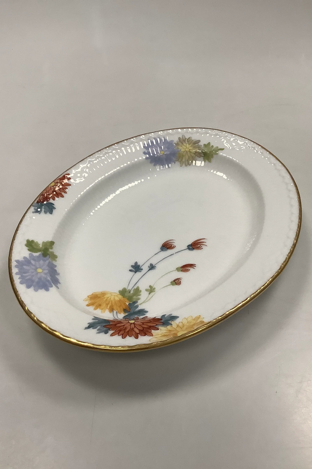 Royal Copenhagen Stel No 93 Hvid Halvblonde m. Blomster og Guldkant Ovalt Fad 30cm