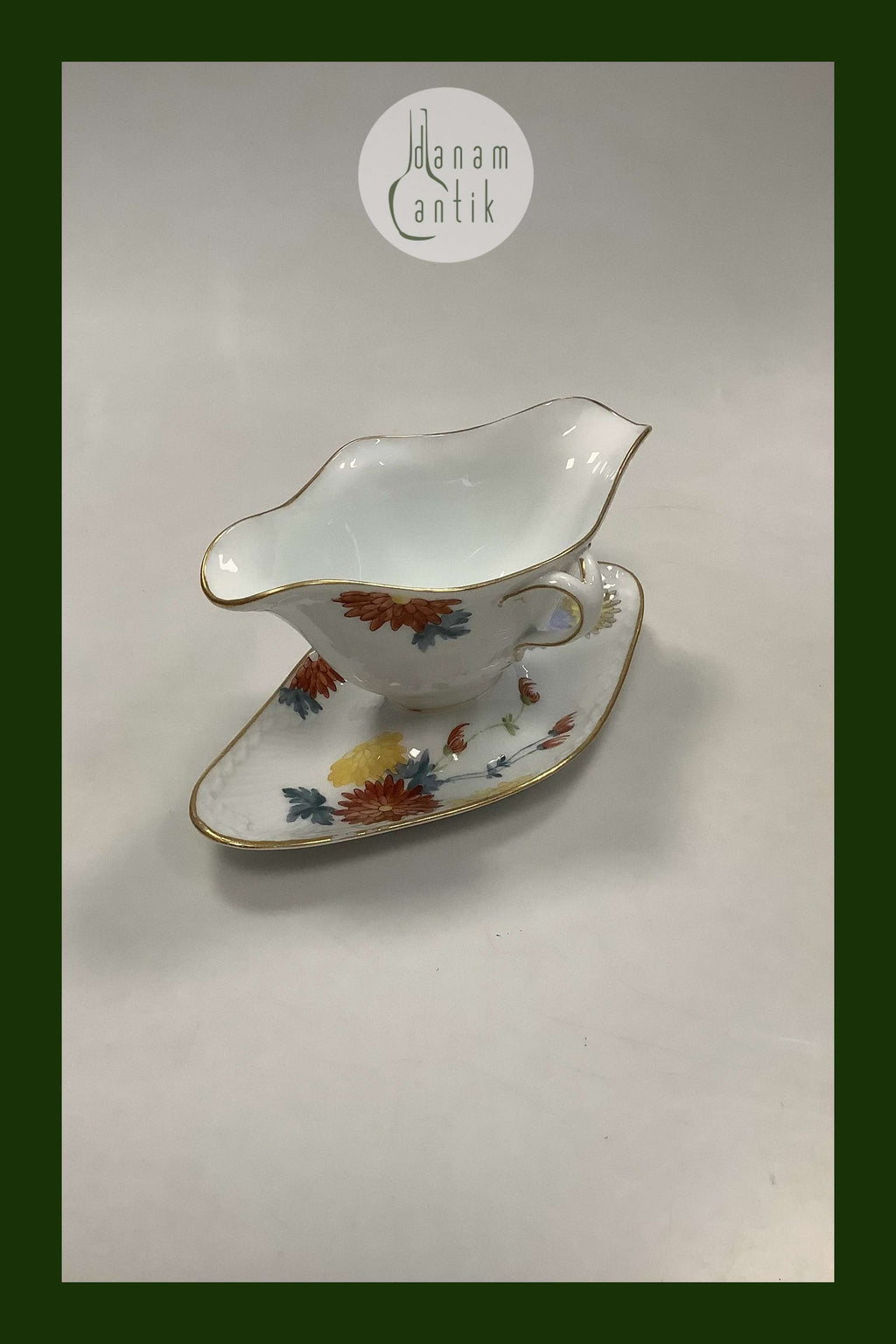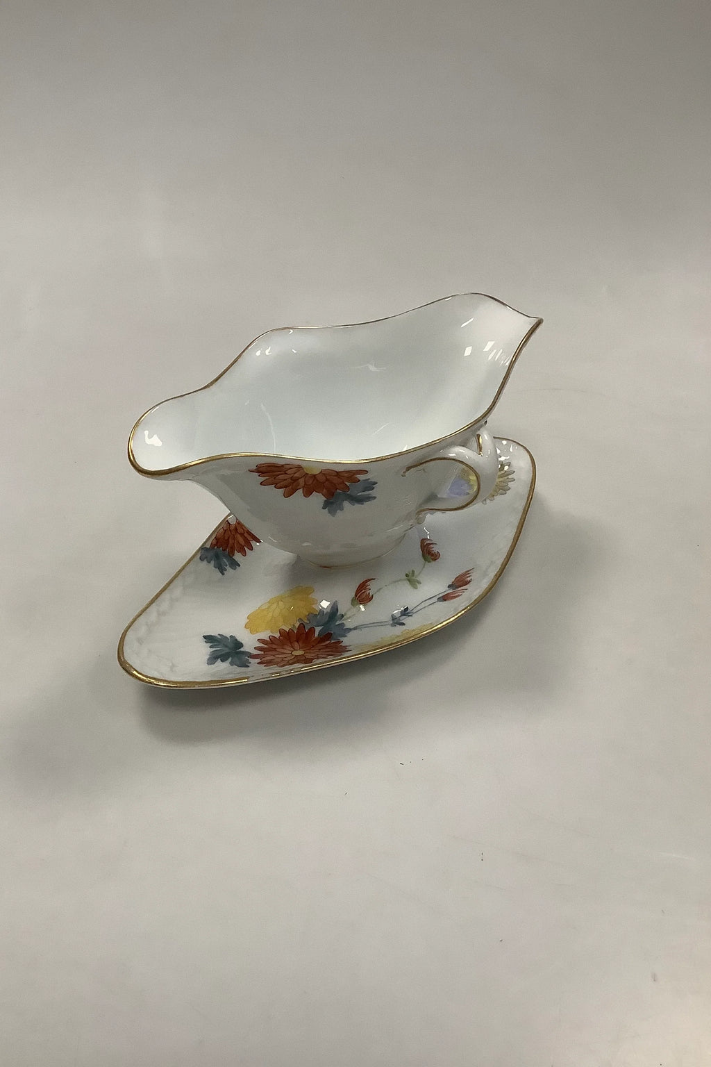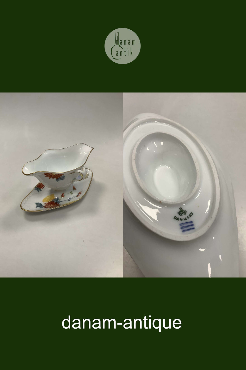 Royal Copenhagen Stel No 93 Hvid Halvblonde m. Blomster og Guldkant Sovseskål.
