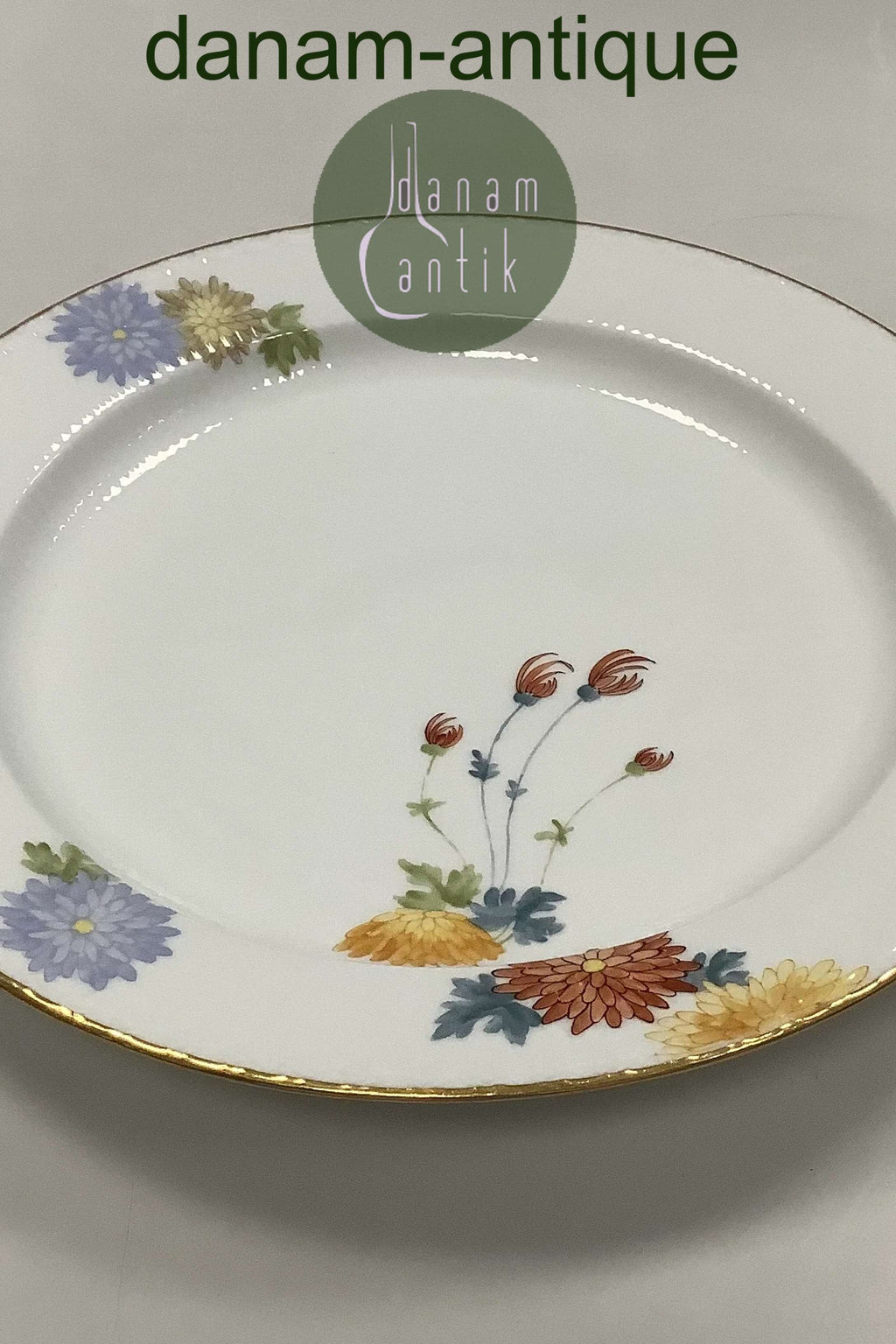 Royal Copenhagen Stel No 93 Hvid Halvblonde m. Blomster og Guldkant Rundt Servingsfad 35,2cm / 13.86 inch