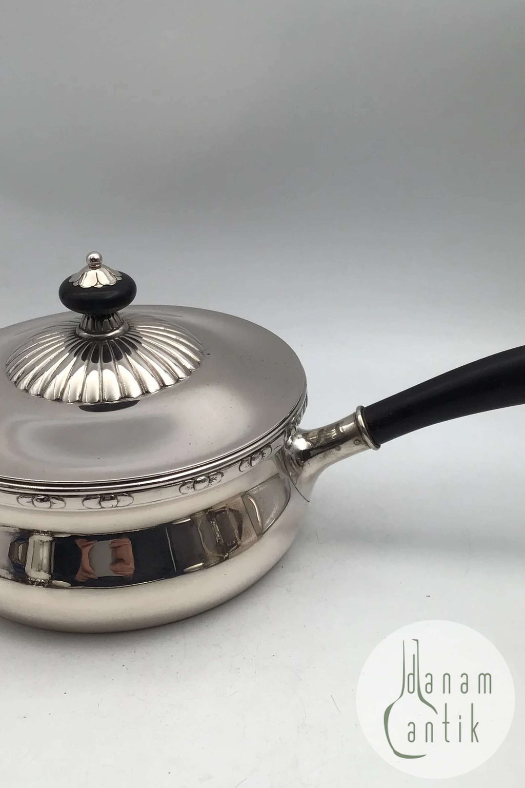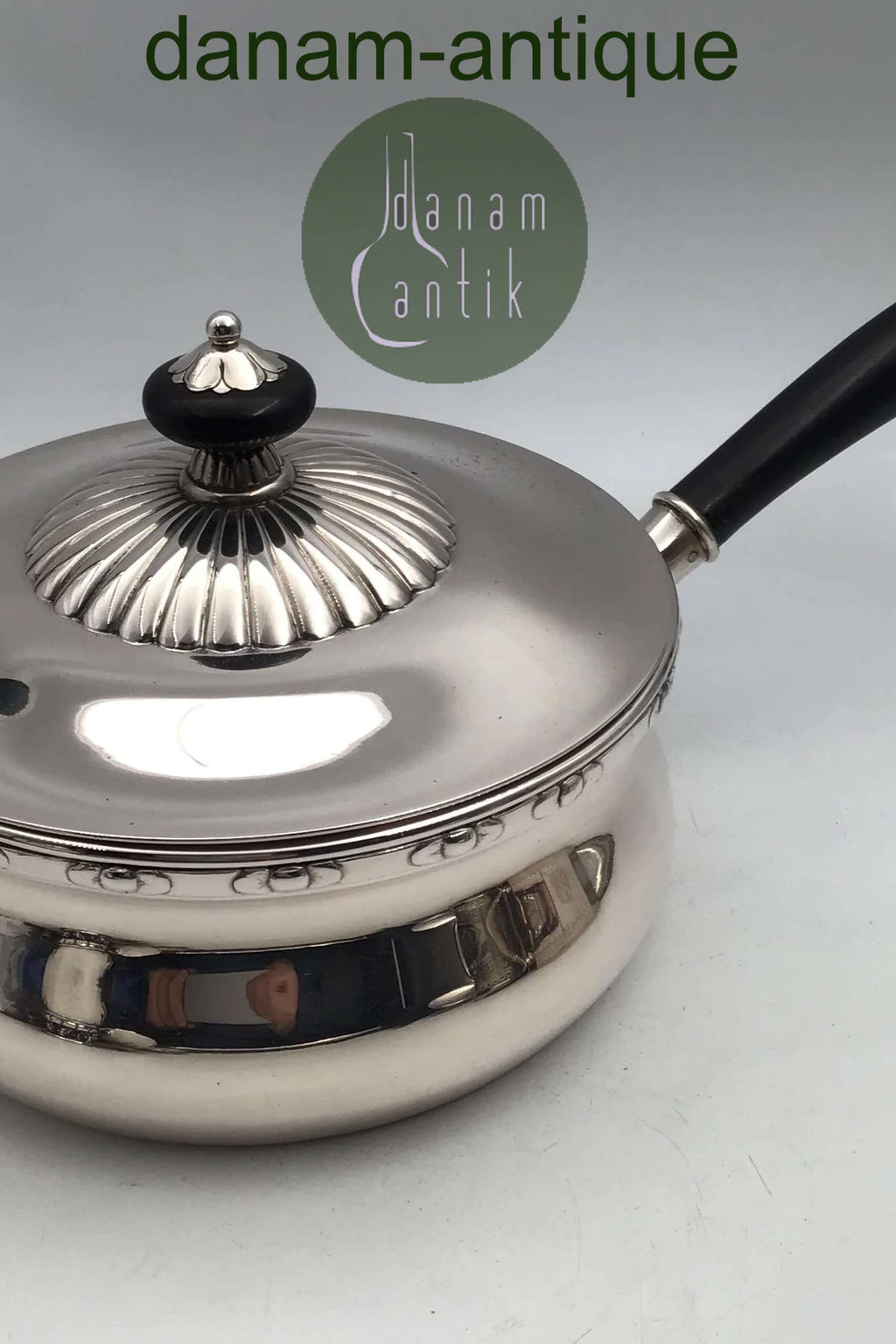 A Dragsted Sølv Lågkasserolle (1915) Måler H 14 cm (5.51 inch) Diam 19 cm (7.48 inch) (Ved håndtag 32 cm (12.6 inch)) Vægt 646 gr (22.78 oz)