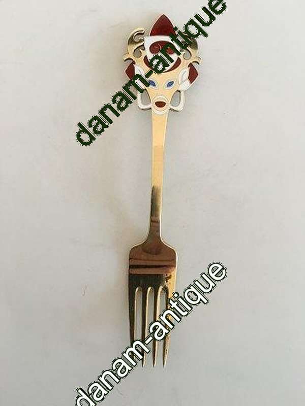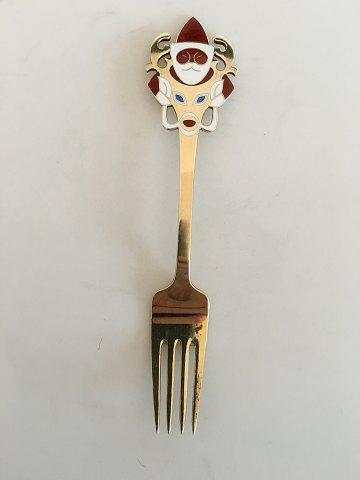 Tegneren Arne Ungermann har formet toppen af gaflen som en julemand, som kommer ridende på sit rensdyr. Julemanden er klædt i rødt, skægget og vanterne er hvide og rensdyrets øjne er blå.