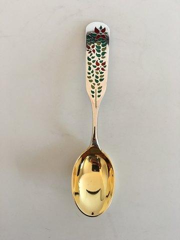 Maleren Palle Pio har valgt Julestjernen som motiv. De tre blomster er fordelt over hele skaftet. Man genkender de røde blomster, der sammen med småblade i to grønne farver udgør dekorationen