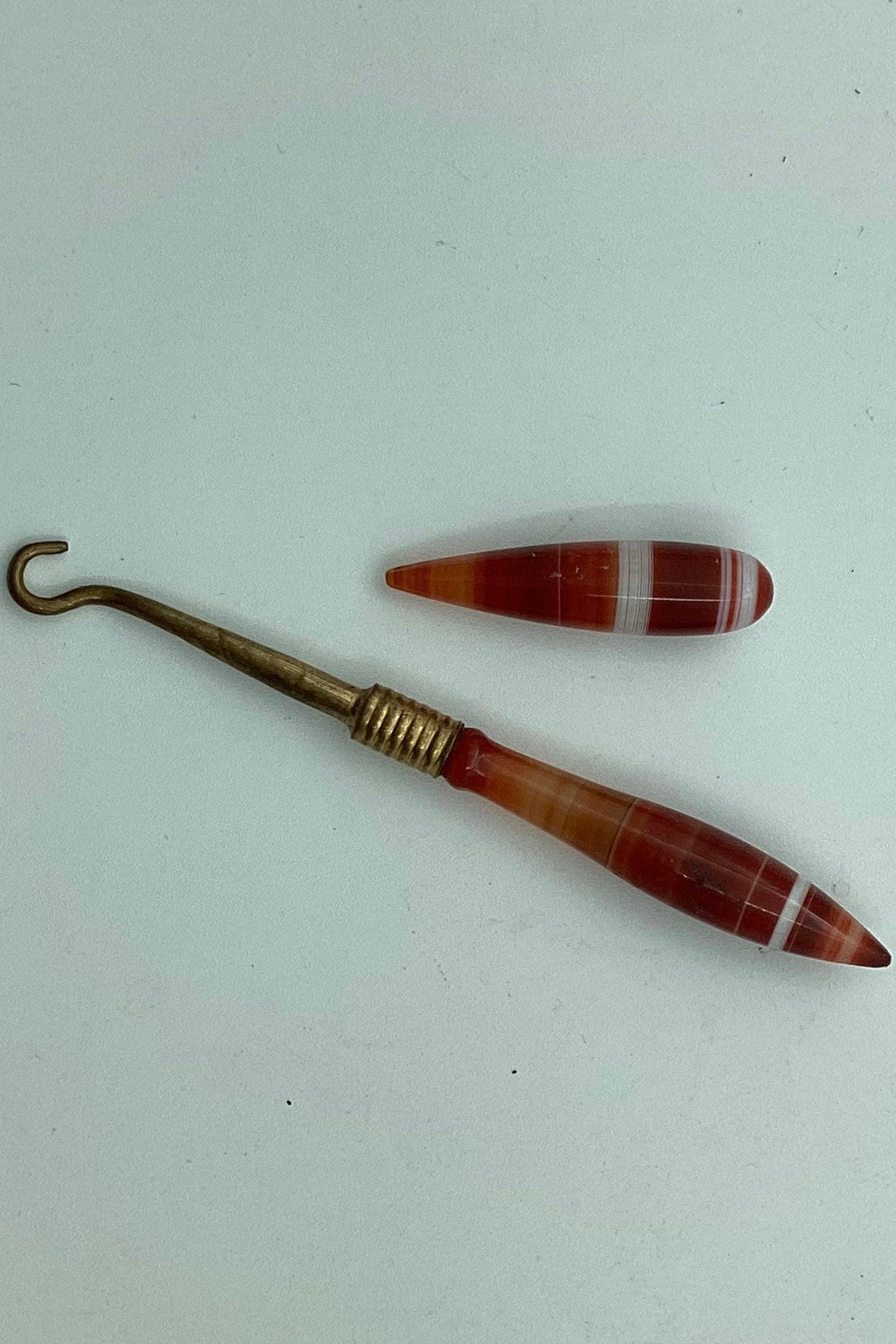 Agat nips. Den ene del "snørrebåndshjælper" Sælges samlet.
