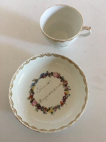 Antik Royal Copenhagen kop og underkop med indskription fra 1790-1810