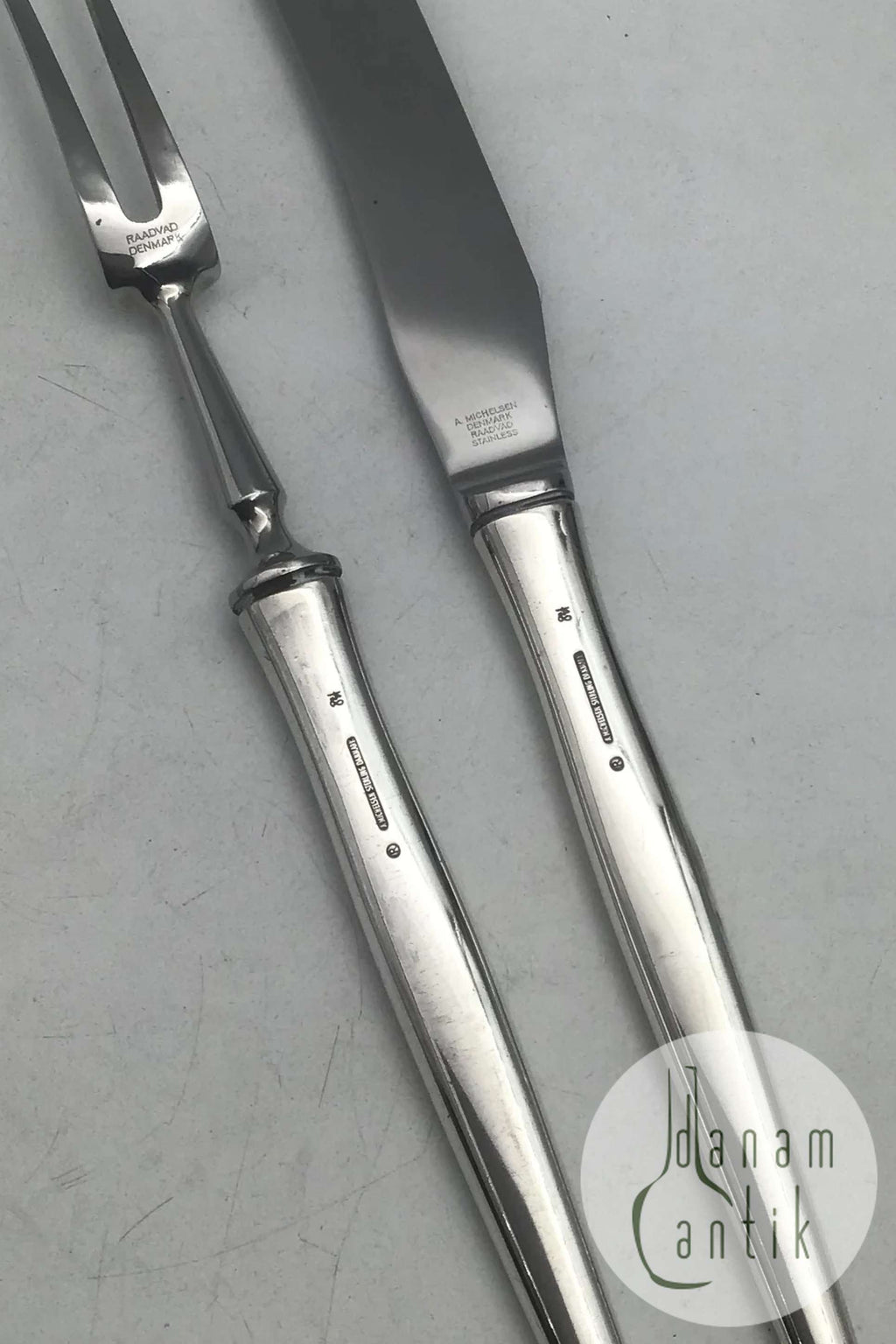 Anton Michelsen Sterling Sølv Tulip Forskærersæt Måler Kniv 30.5 cm (12 inch) Gaffel 28.5 cm (11.22 inch)