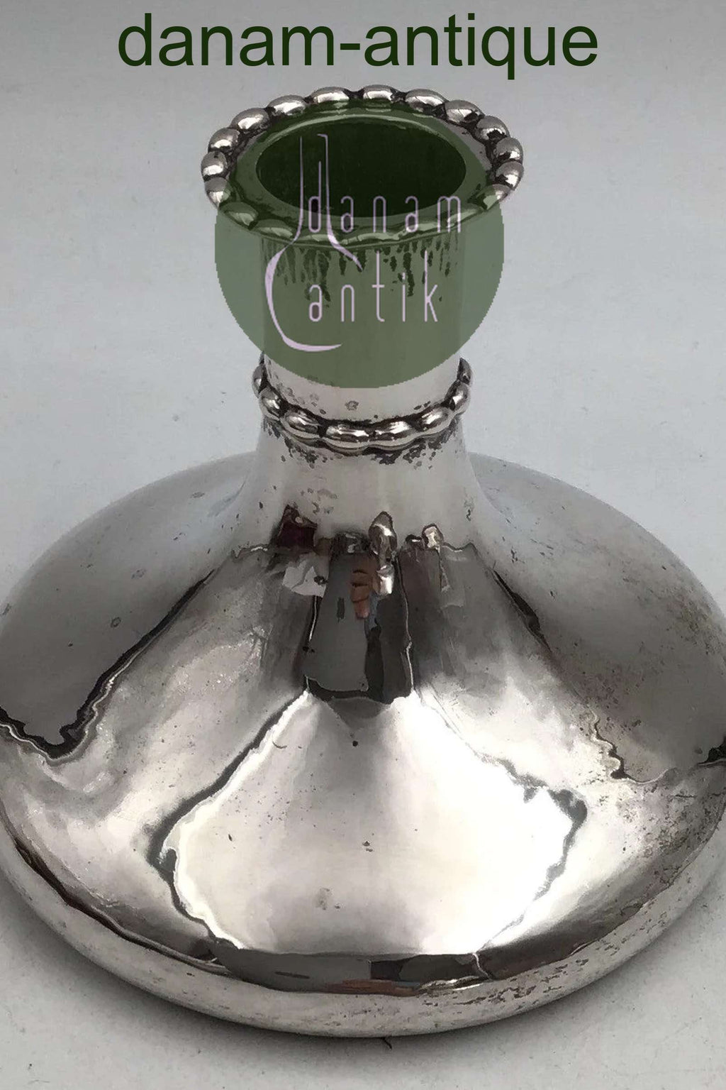 Axel Holm Dansk Sølv Lysestage Måler H 9.2 cm (3.62 inch) Diam 10.6 cm (4.17 inch) Vægt 314.7 gr (11.10 oz) (Udfyldt)