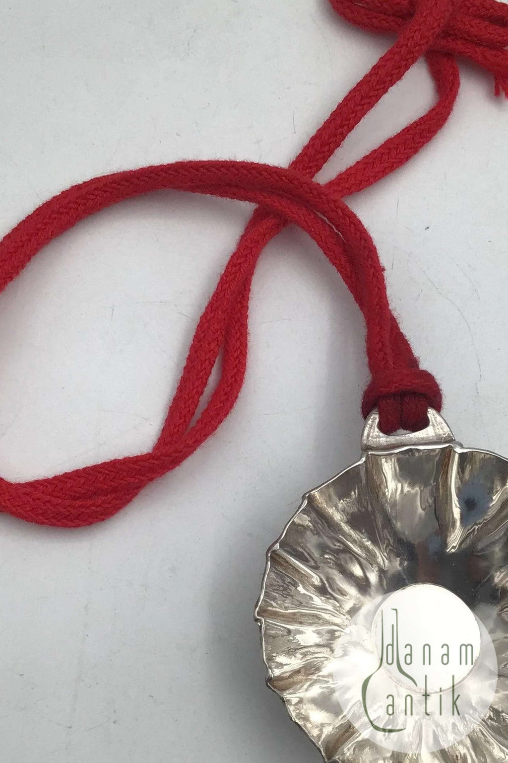 Bent Gabrielsen Sterling Sølv Tastevin (1995) Måler Diam 6.2 cm Vægt 38.7 gr. (1.37 oz) Rød Bomuldsnor Måler 75 cm (29.5 inch)