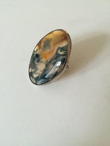 Bent Knudsen Sterling Sølvrng med lys sten No 204