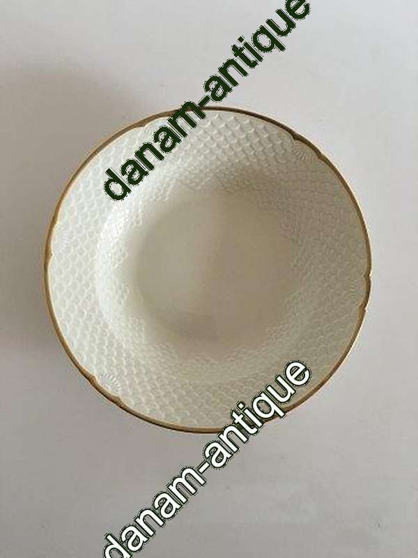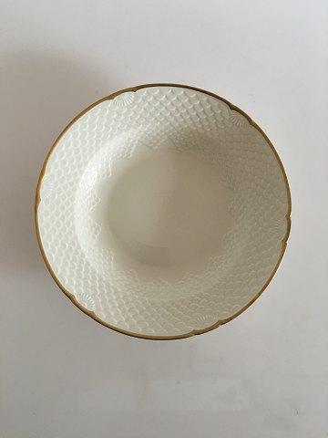 Bing og Grøndahl Aakjær Stor Dyb Tallerken No. 22. Måler 24.5 cm. Creme med guldkant, i fin stand.