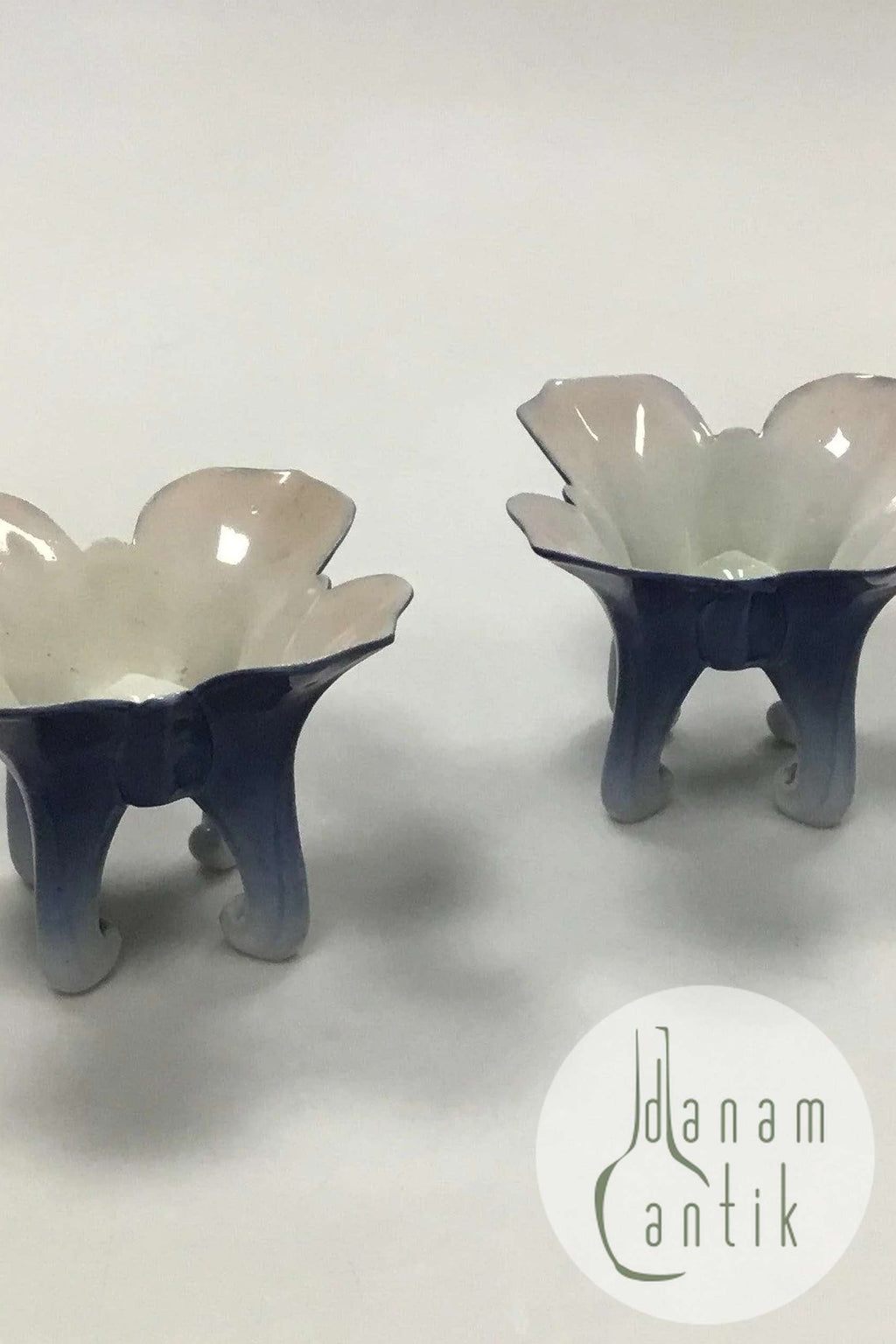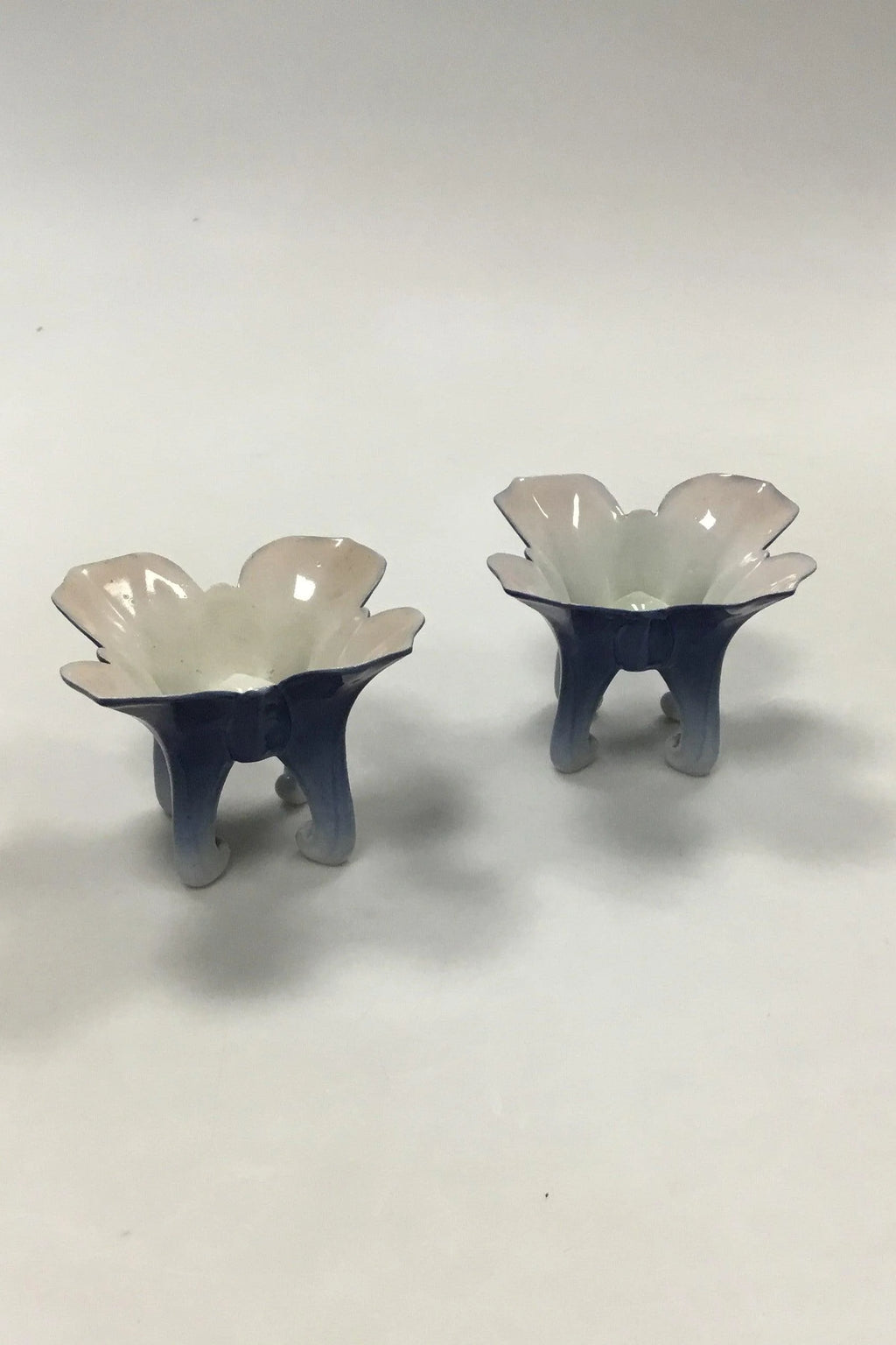 Bing og Grøndahl Art Nouveau To kuvertvaser i form af en blomst, opsat på fire fødder. No 5001. Måler 7 cm ( 2 3/4 in. ) Med et par små chips