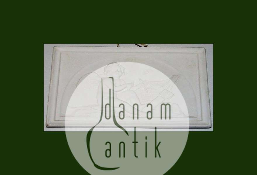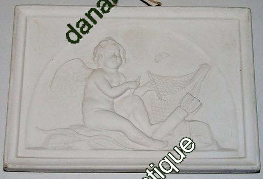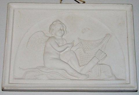 Bing and Grondahl  Biscuit Platte "Amor Virker et Net" No 82. Kopi fra 1852 efter Thorvaldsens original fra Rom 1831. Måler 12,5 x 9,5cm 4.92 x 3.74 inch).