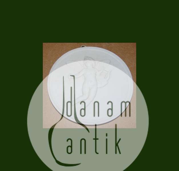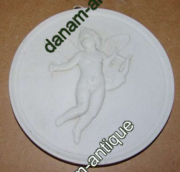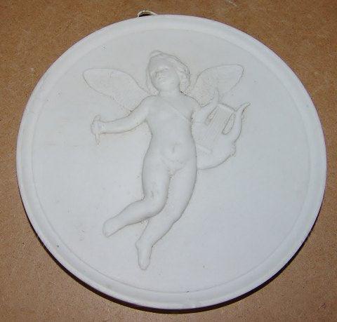 Bing & Grøndahl Biscuit Platte Poesiens Genius No 104. Efter kopi af original fra 1838 af Pietro Galli efter tegning af Thorvaldsen. Måler 14,5cm (5.70 inches). Har afslag på kanten klokken 6.
