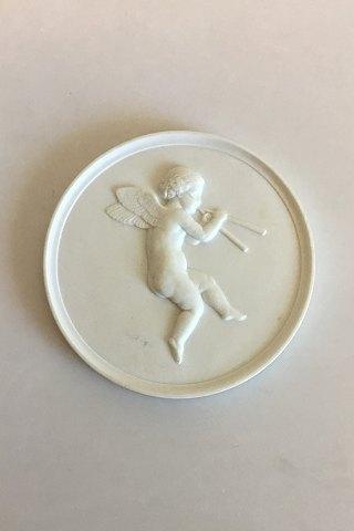 Bing & Grøndahl Bisquit Platte "Musikkens Genius". Kopi af relief modelleret i Rom i 1838 af Pietro Galli efter tegning af Thorvaldsen. Måler 14,2 cm