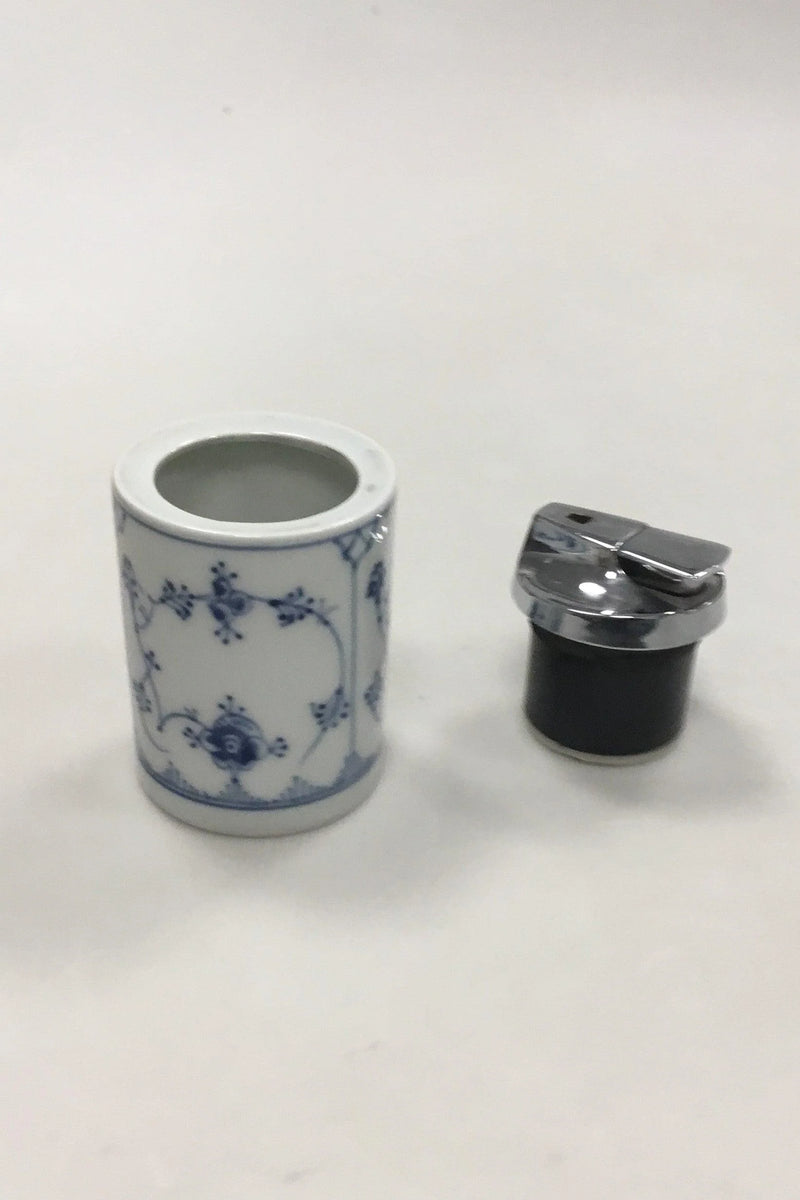 Bing & Grøndahl Blåmalet Musselmalet Lighter No 367. Lighterindsats af mærket Ronson. Måler 9 cm (3 35/64 in). Inskription i svagt rosa: C.V. 11-9-73.