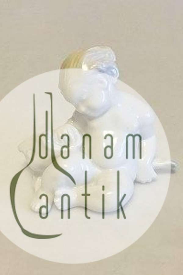 Bing & Grøndahl Blanc de Chine Figur af Havbarn der læner sig op ad fisk No 4037