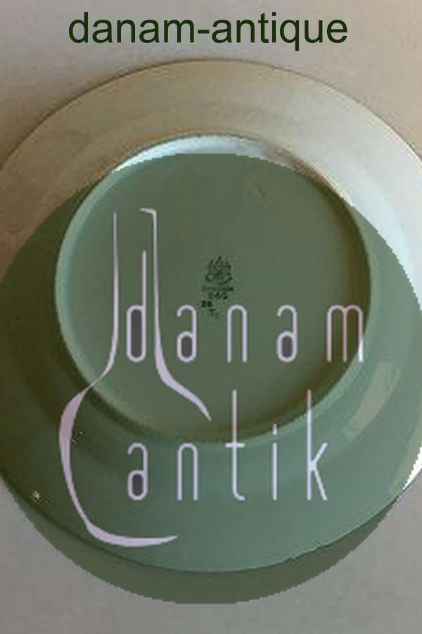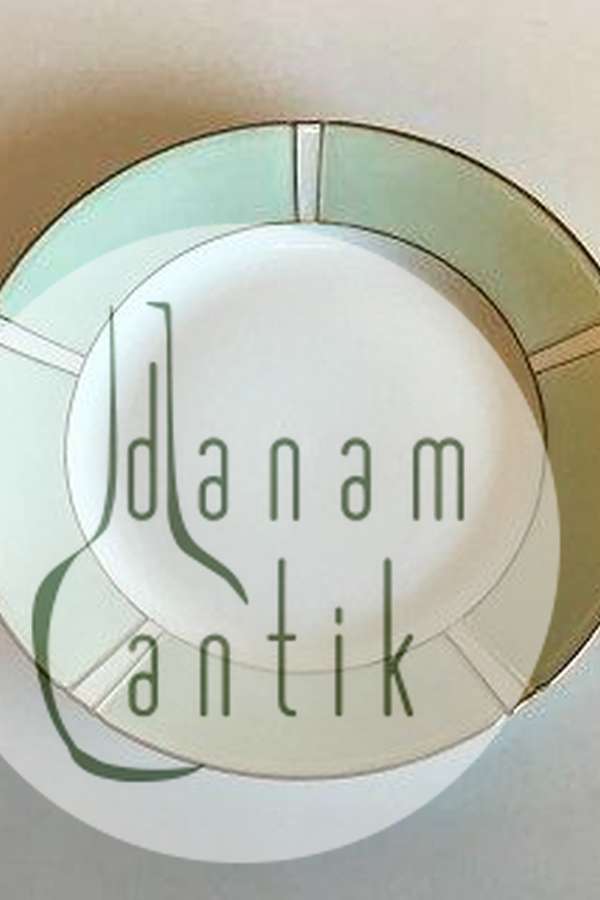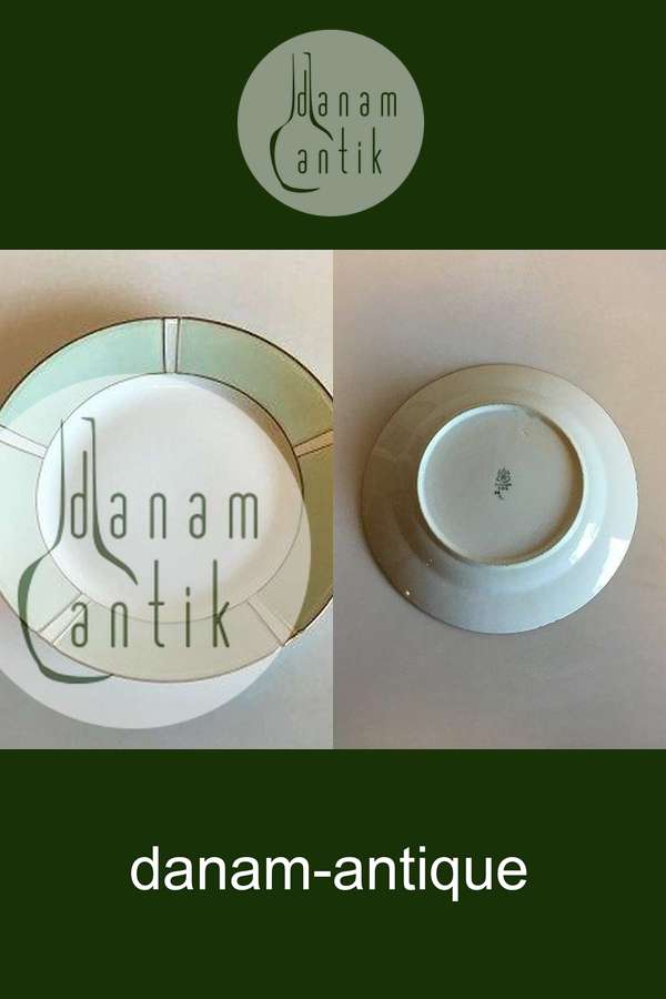 Bing & Grøndahl Stel med grøn dekoration med guld på form 507(Herregaard) Frokosttallerken No 26. Måler 21 cm