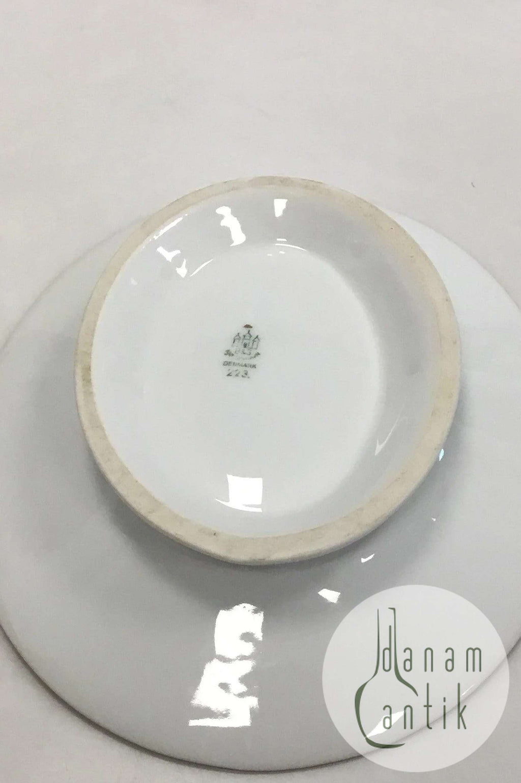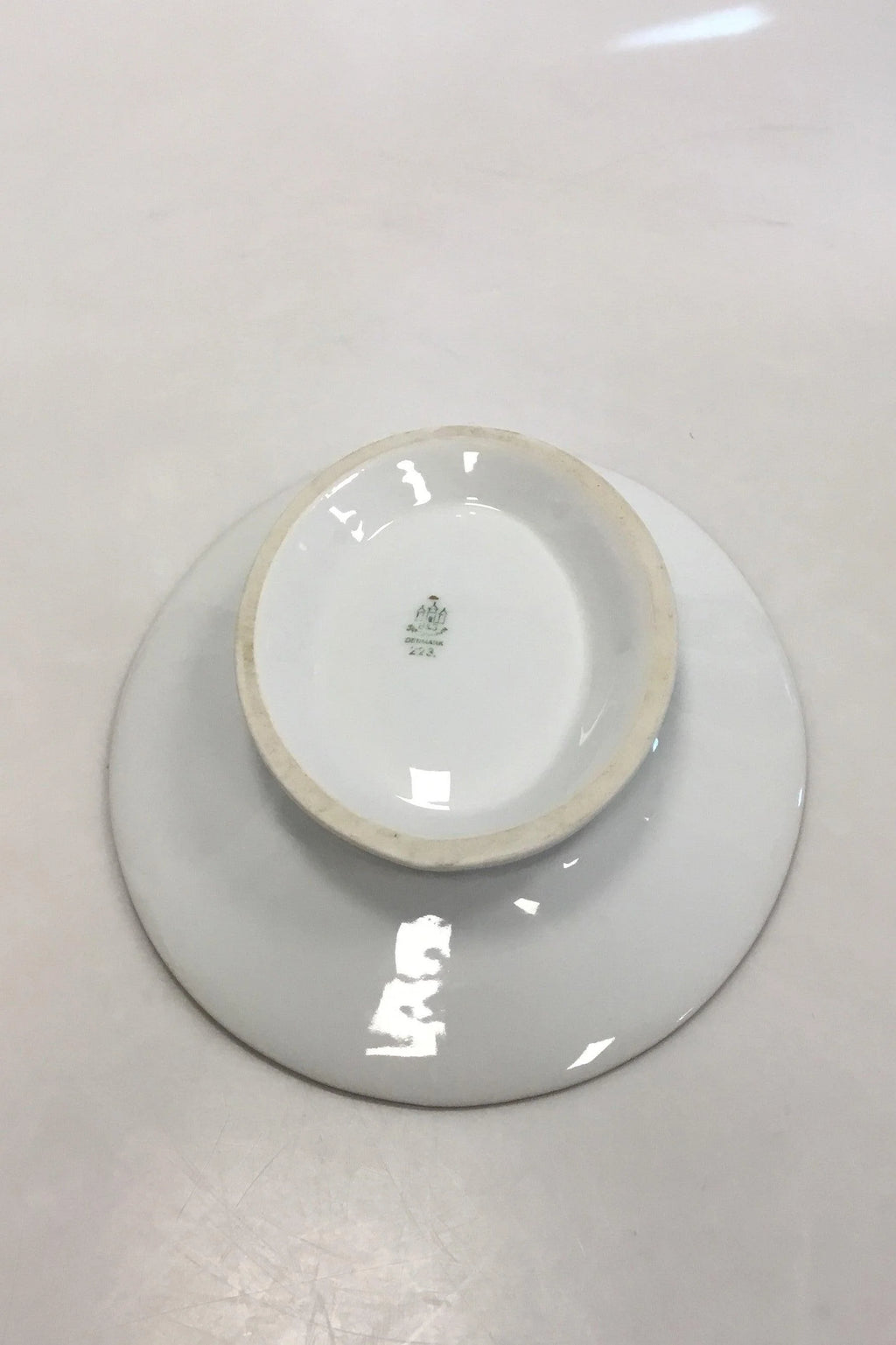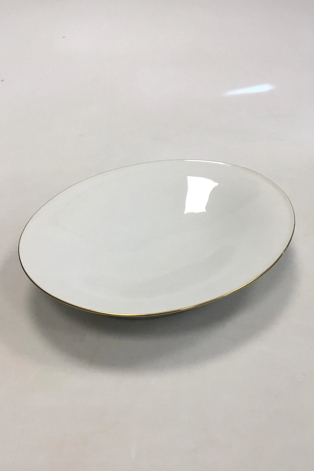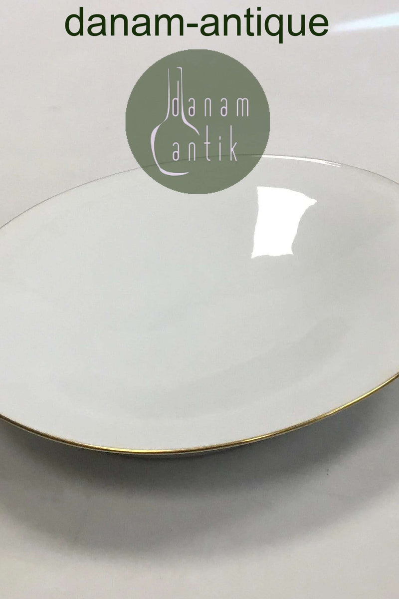 Bing & Grøndahl Hvidt glat stel med guldkant Oval skål på fod No 223. Måler 22 cm x 18 cm(8 21/32 in. x 7 3/32 in.)