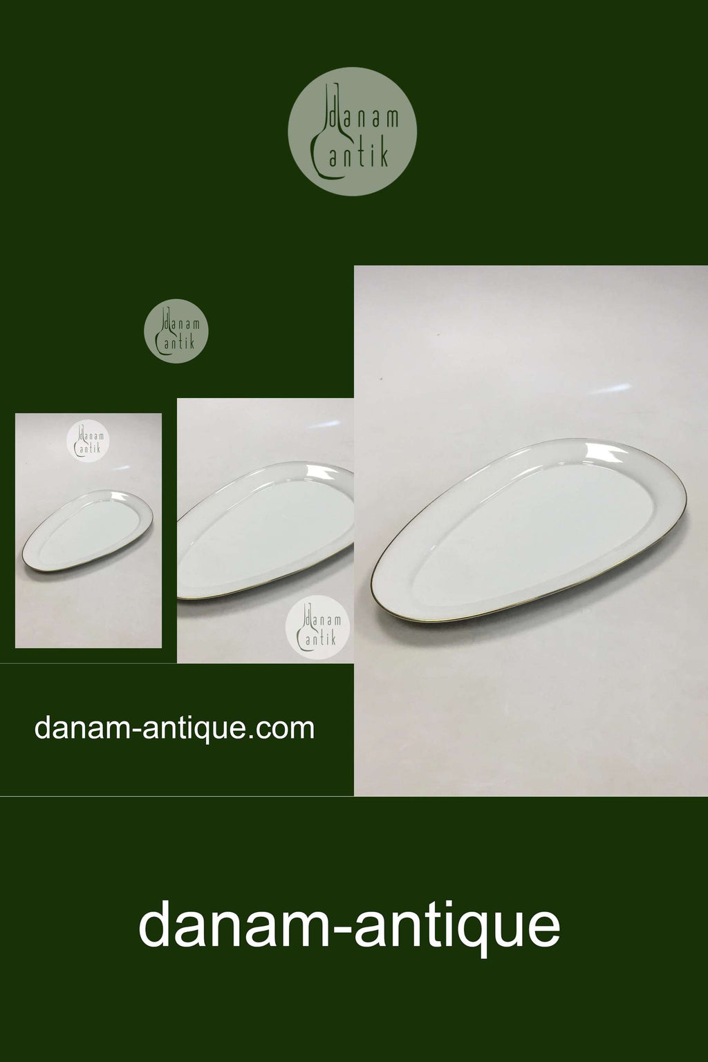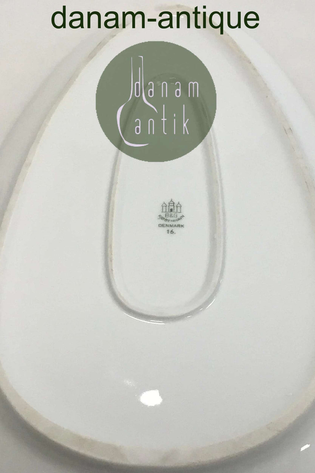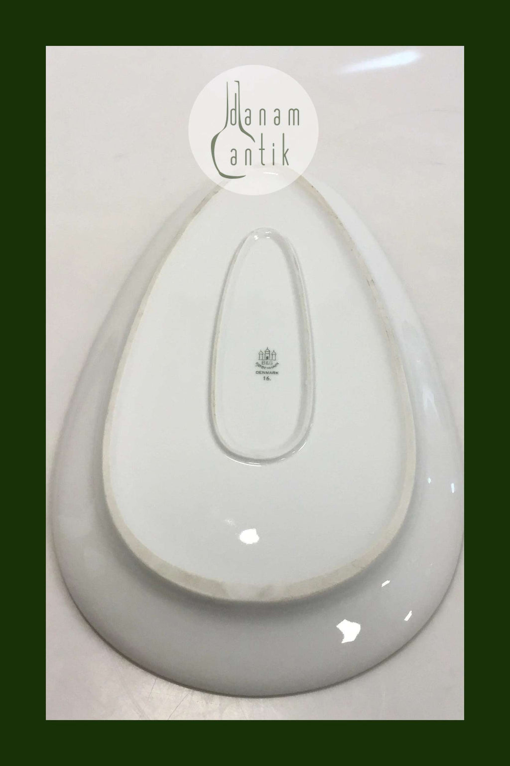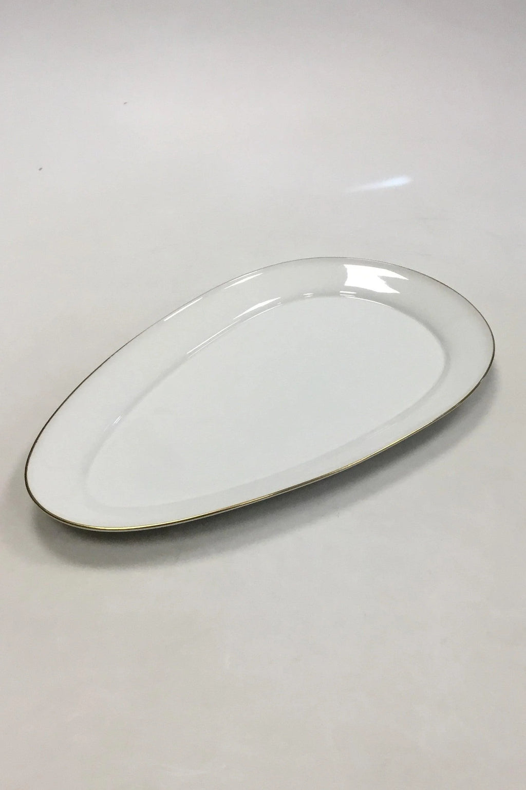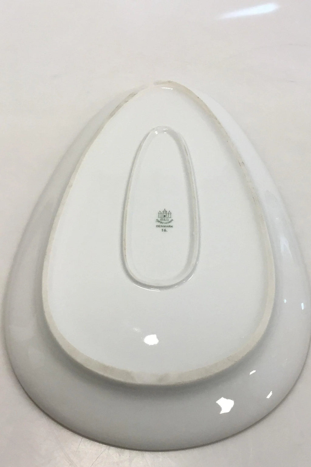 Bing & Grøndahl Hvidt glat stel med guldkant Trekantet fad No 16. Måler 32,5 cm x 20 cm(12 51/64 in. x 7 7/8 in.)