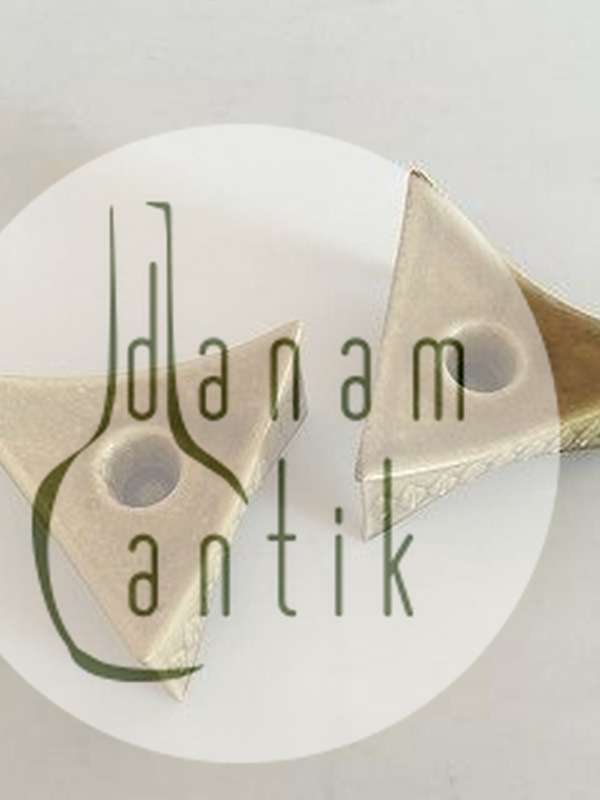 Bing og Grøndahl Jens Quistgaard Par Trekantede Lysestager fra Relief Serien. Keramisk stentøj (Kronjyden). Måler 5,5 cm x 9,5 cm.