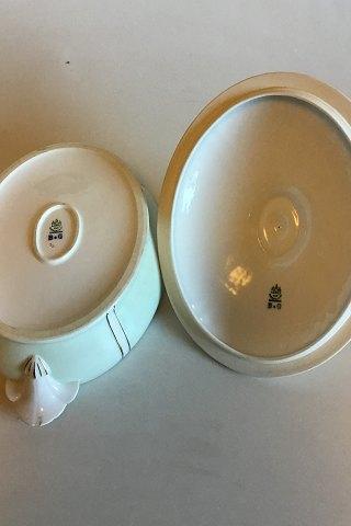 Bing & Grøndahl Oval Terrin med låg Stel med grøn dekoration med guld på form 507(Herregaard)