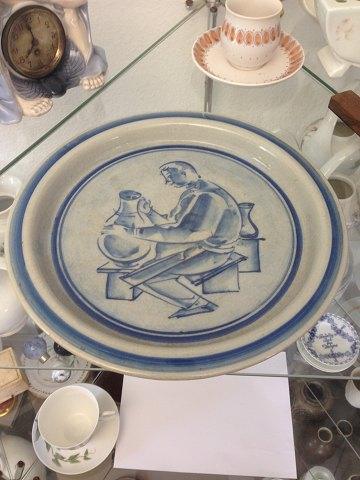 Bing & Grøndahl Stentøjsfad med motiv af pottermager på fabrikken unika af Ove Larsen. Måler 25cm