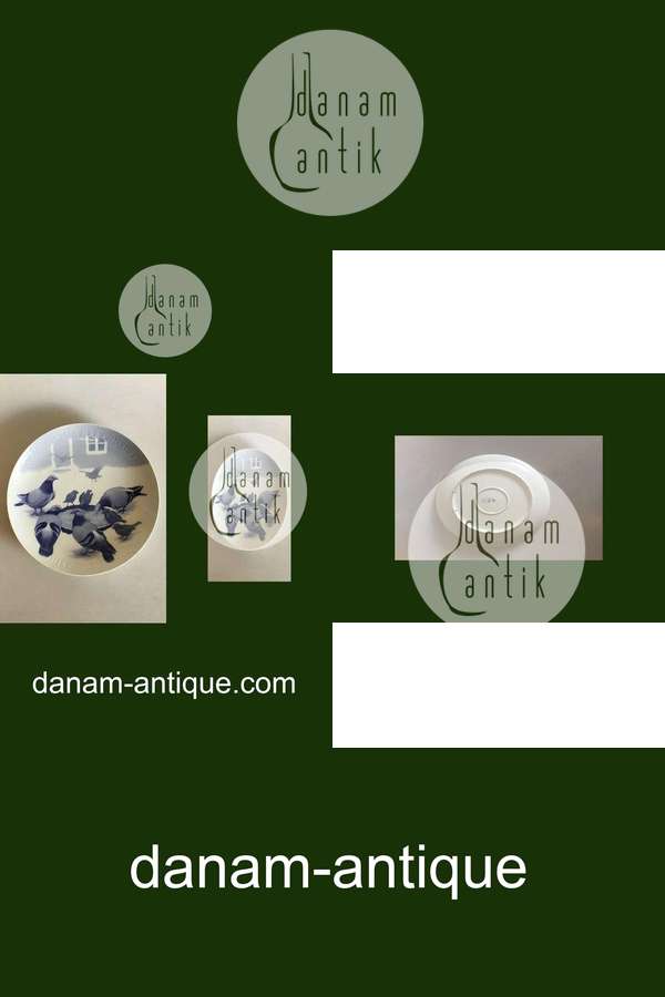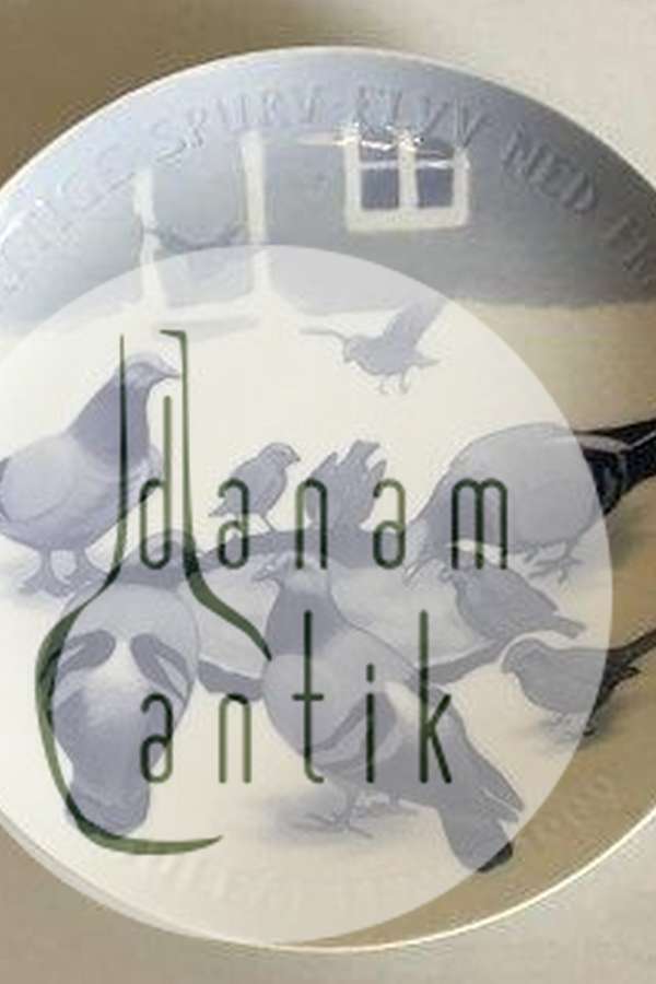 Bing & Grøndahl Stor juleplatte 1909 BG-L1909. Fugl flyv ned fra taget. Måler 33 cm