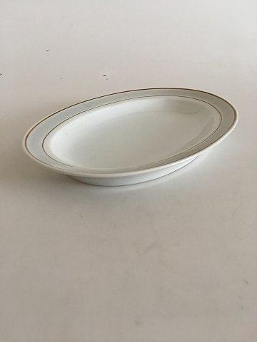 Bing & Grøndahl Tiber Ovalt Fad No 18. 24 cm. Hvid med Lysegrå Kant og Guldkant I god stand