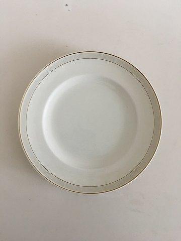 Bing & Grøndahl Tiber Rundt Serveringsfad No 20. 32 cm Ø. Hvid med Lysegrå Bord og Guldkant. I fin stand.
