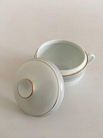 Bing & Grøndahl Tiber Sukkerskål No 94. 7.5 cm H. 9.5 cm Ø. Hvid med Lysegrå Bord og Guldkant. I fin stand.