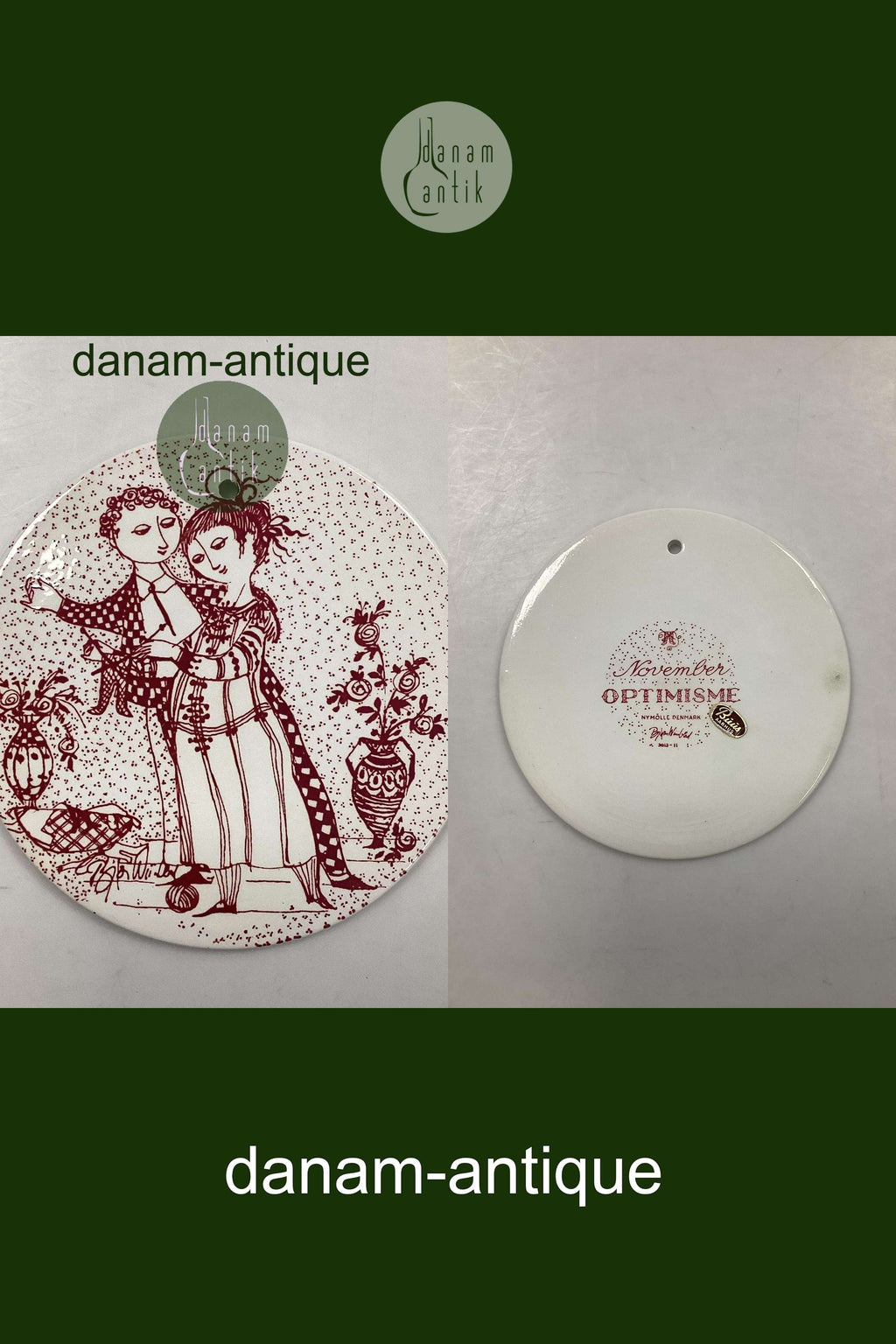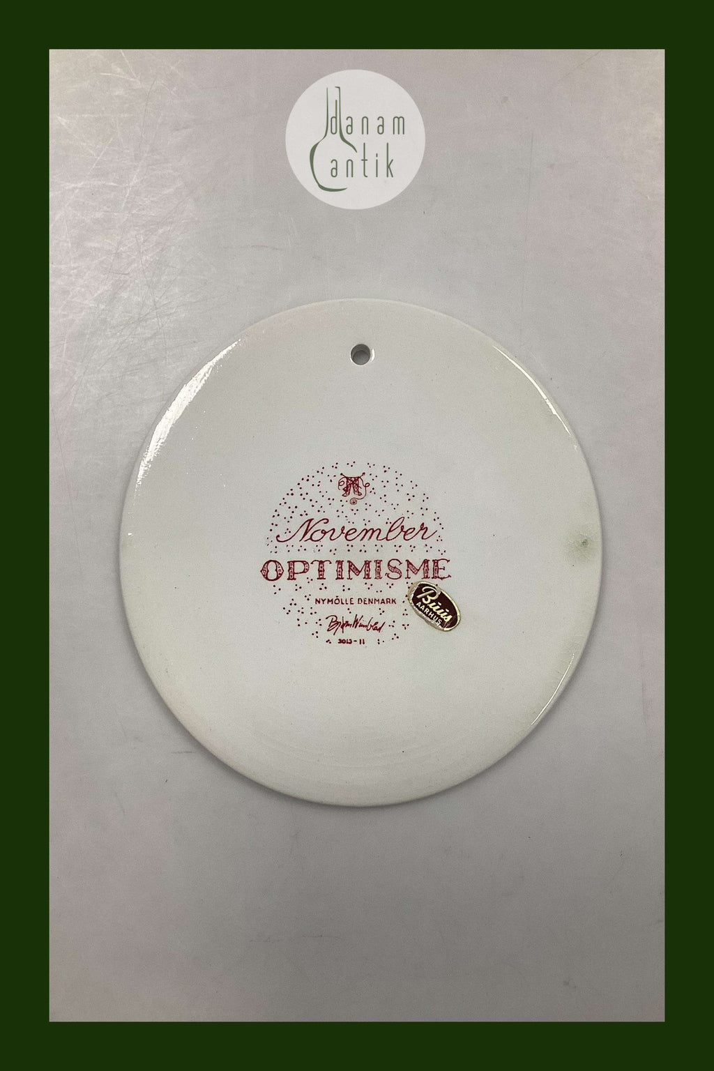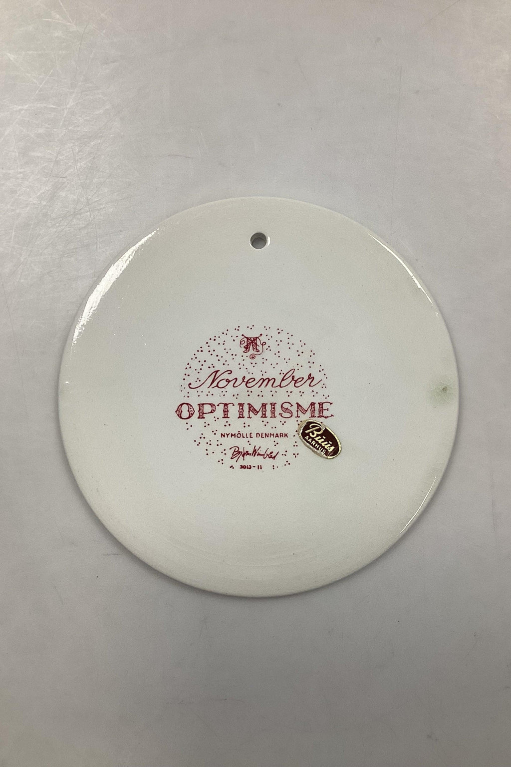 Rød månedsplatte i fajance for november - OPTIMISME. Designet af Bjørn Wiinblad for Nymølle. I god stand. Fabriksmærket på bagsiden. Mål: 15 cm (5.90 inch.)