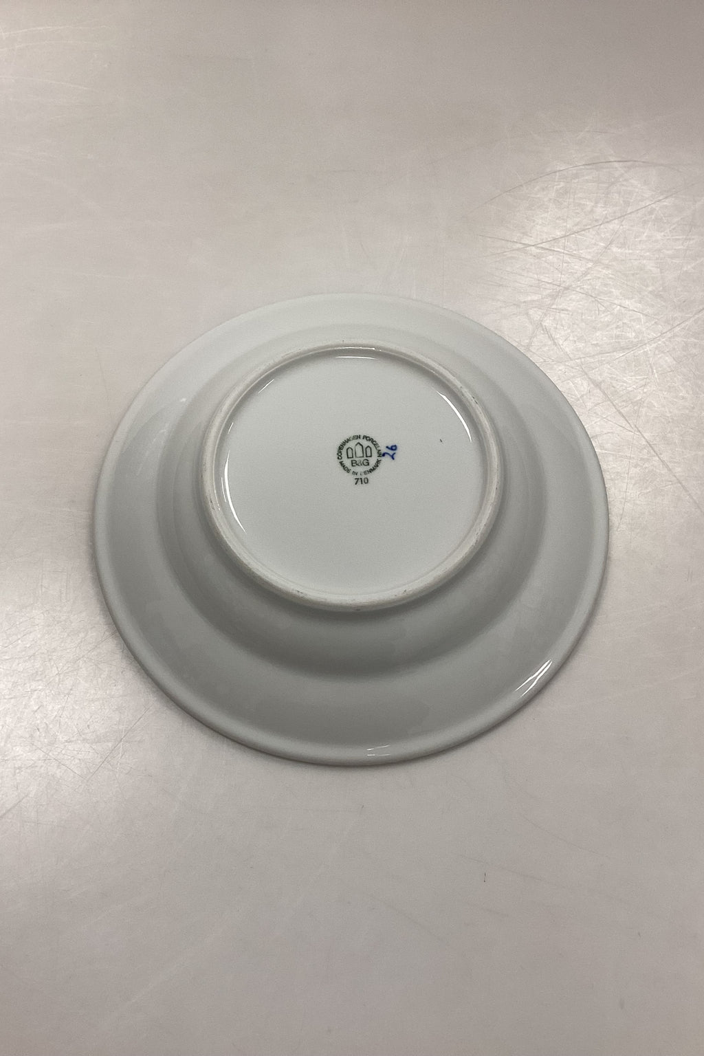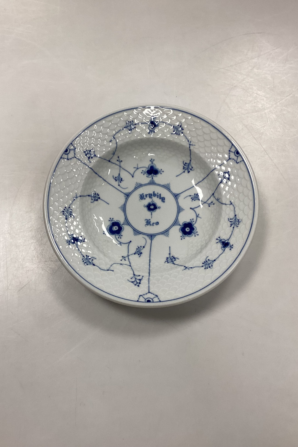 Bing og Grøndahl Blåmalet Musselmalet Hotel med Logo Lille Dyb Tallerken No. 710/1006. Logo fra Kryb i Ly Kro.
