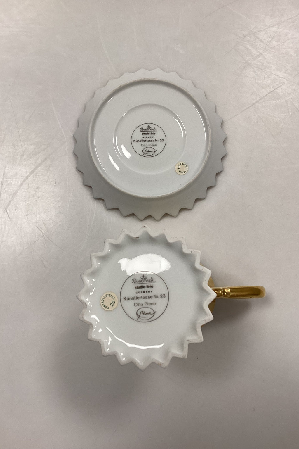 Rosenthal Studio-Line Kunstnerkop No. 23. Designet og signeret af Otto Piene. Udført i hvid porcelæn med gulddekoration.