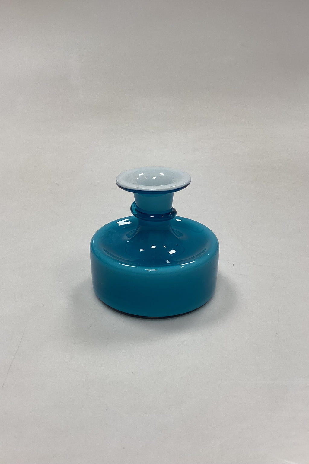 Holmegaard Palet Glaslysestage. Designet af Michael Bang. Farve: Turkisblå og hvid indvendig. Brugsspor i bunden og lille boble på kanten, se foto.