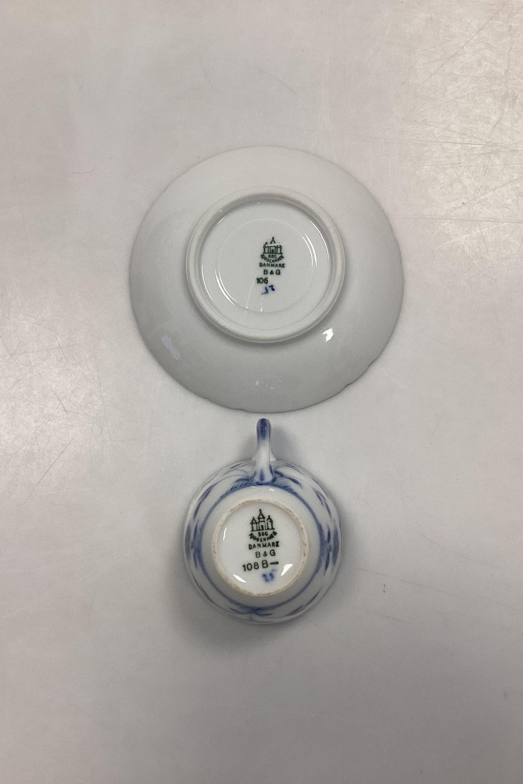 Bing og Grøndahl Sommerfugl Mokkakop og Underkop No. 108B eller 463. Kop måler 5,5 cm x 6,5 cm / 2.17 in. x 2.56 in.