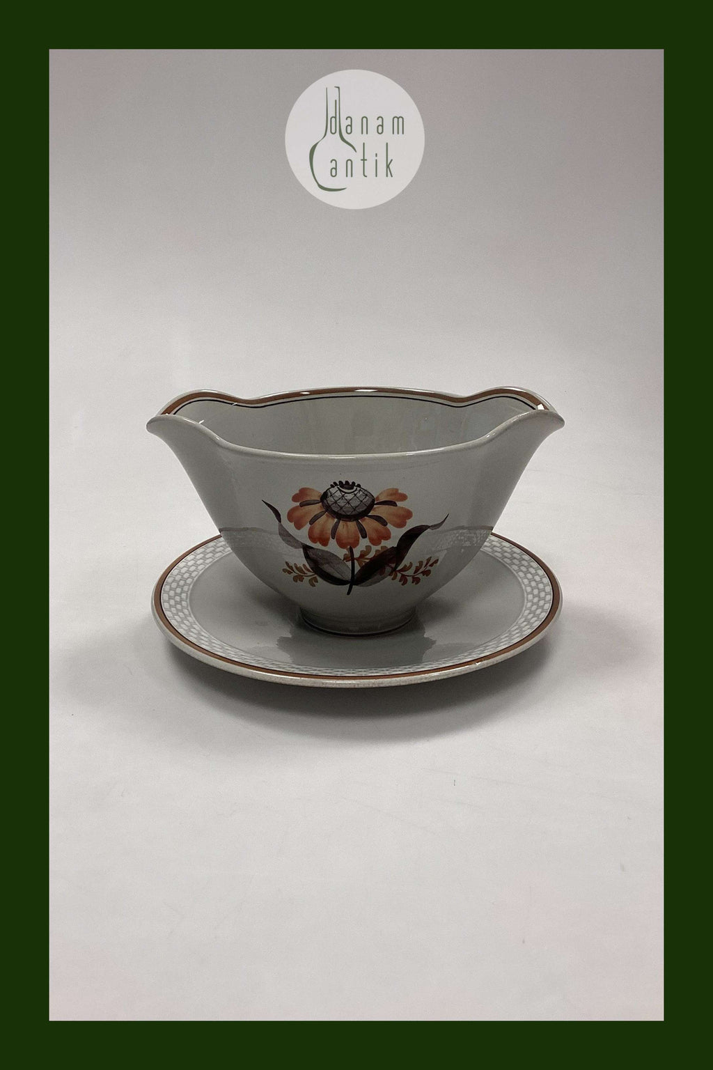 Aluminia Kirsten Sauceskål på fod. Måler 18,5 cm x 13,5 cm / 7.29 in. x 5.32 in.