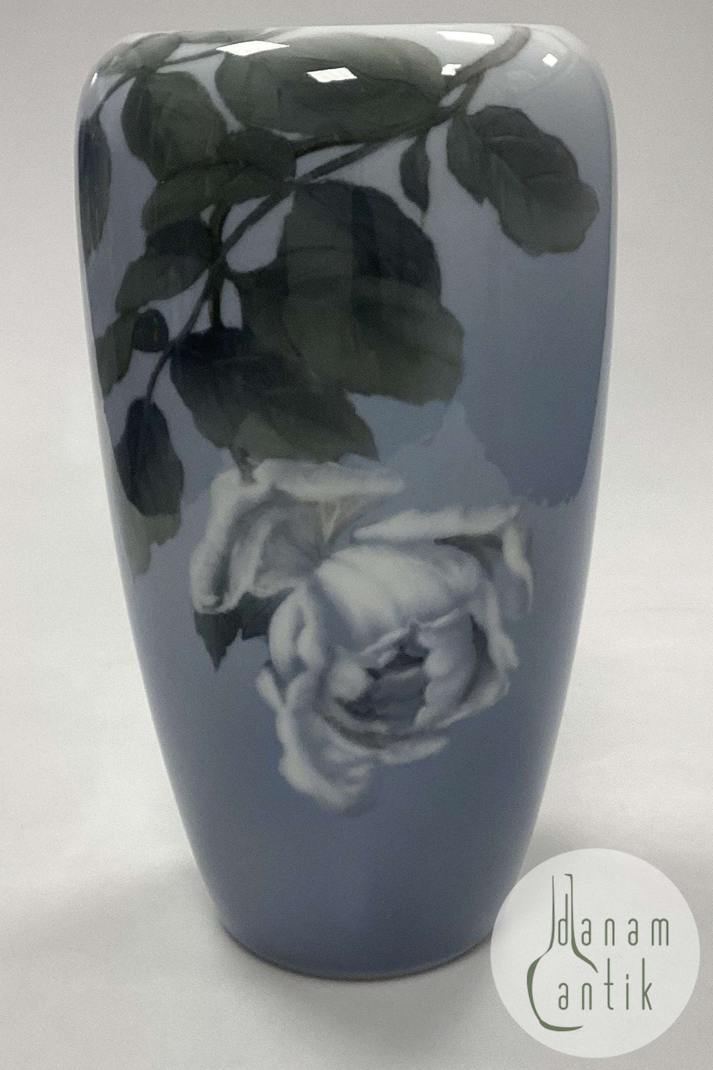 Royal Copenhagen Vase - Hvid Rose No. 1092/1049. Måler 23 cm / 9,05 in.