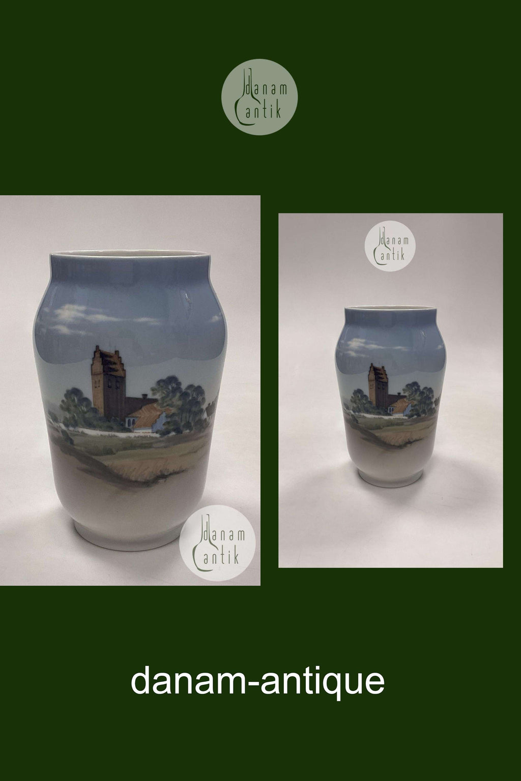 Royal Copenhagen Art Nouveau Vase - Landsbykirke No. 2843A/108. Måler 17 cm / 6,69 in. 4. Sortering med glasurhuller i kirken.