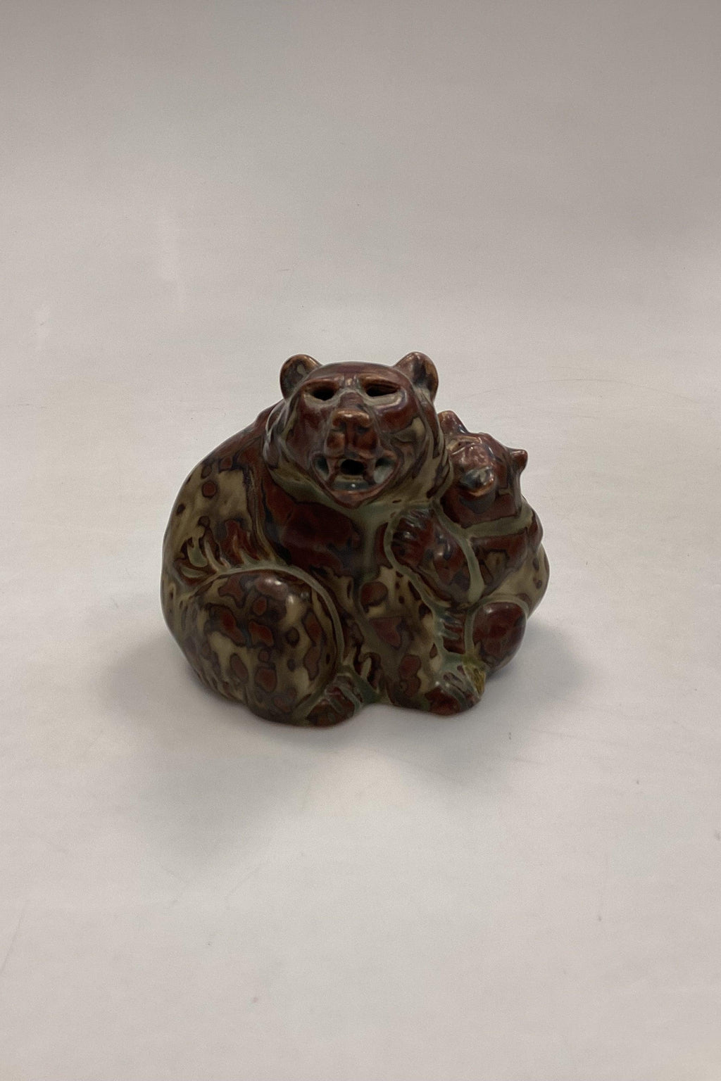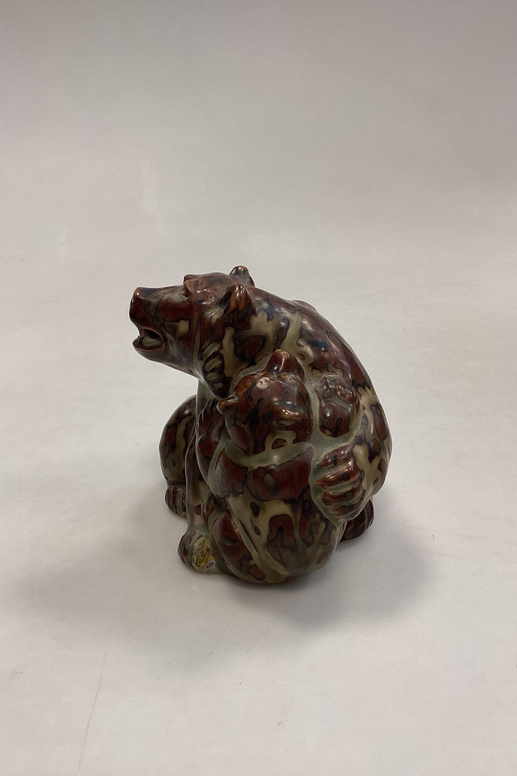 Royal Copenhagen Stentøjsfigur af Bjørn med Unge No. 20193. Designet af Knud Kyhn. 1. Sortering.