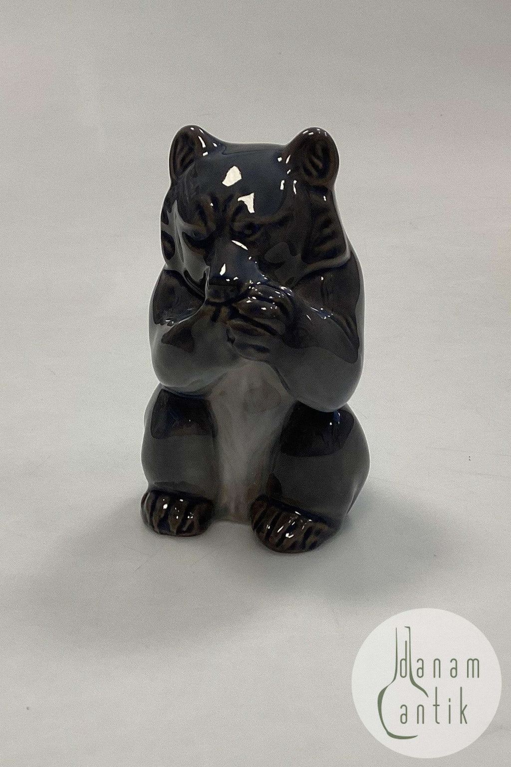 Royal Copenhagen Figur af Bjørneunge No. 3014. Designet af Knud Kyhn. Måler 9 cm / 3,54 in. Gråsorte nuancer. 2. Sortering.