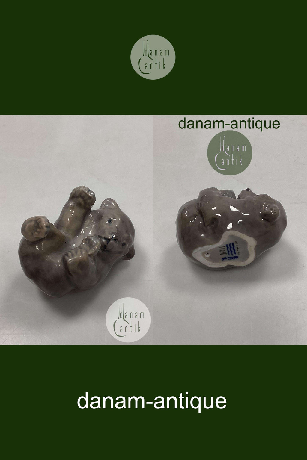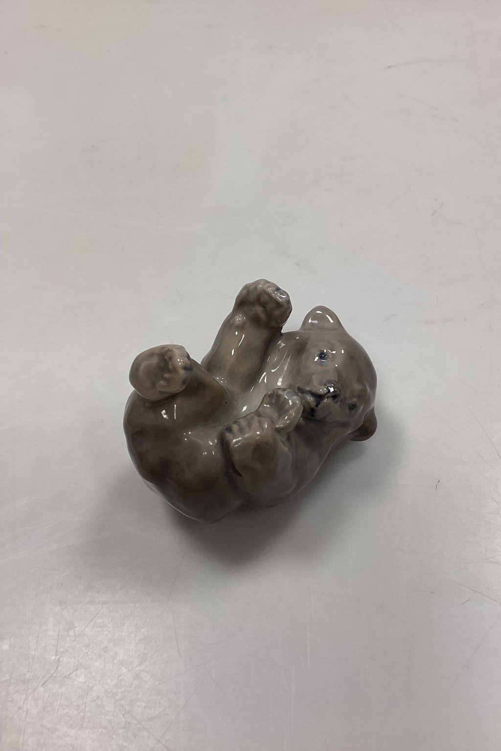 Royal Copenhagen Figur Bjørneunge No. 1124. Designet af Knud Kyhn. Lysegrå farve.