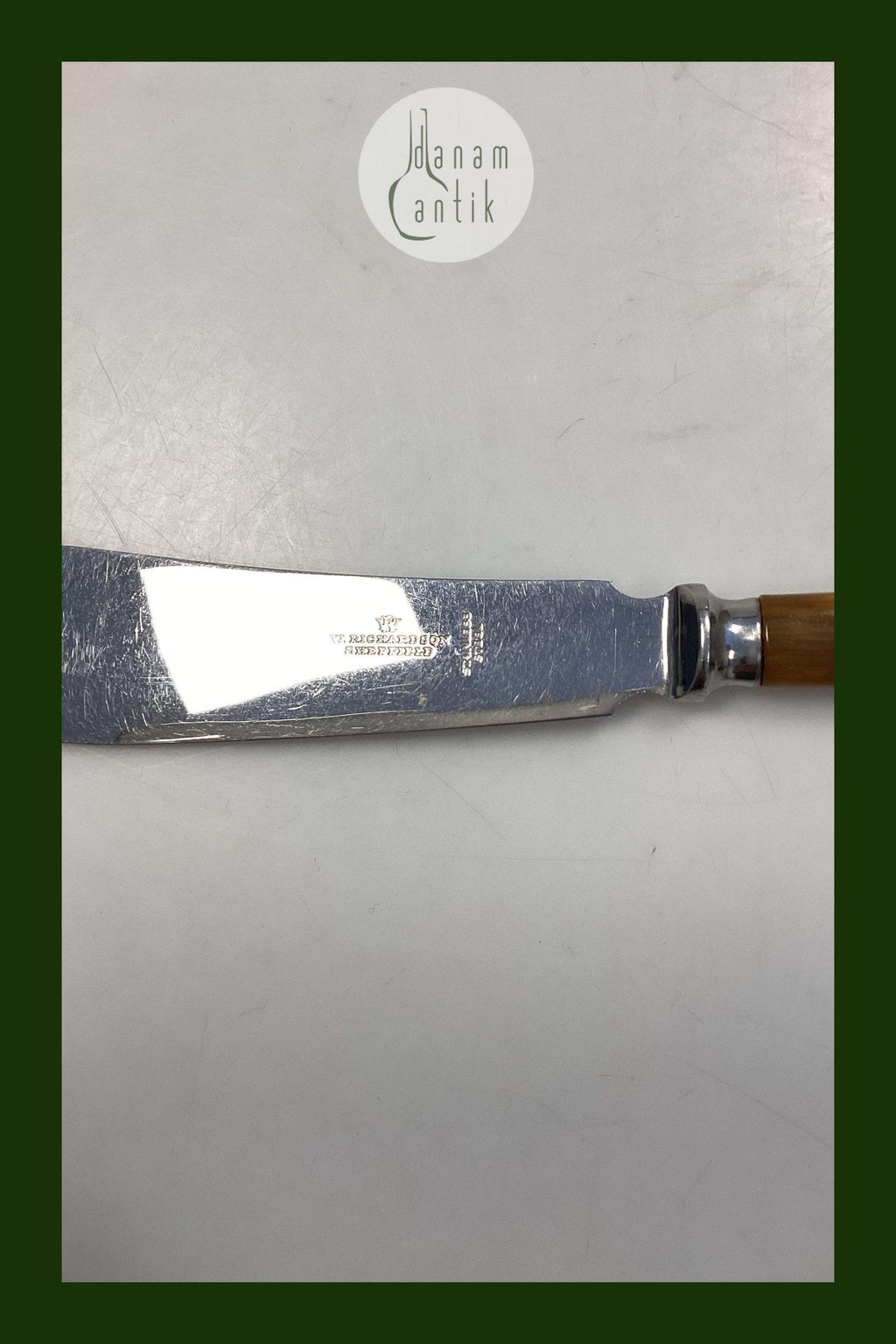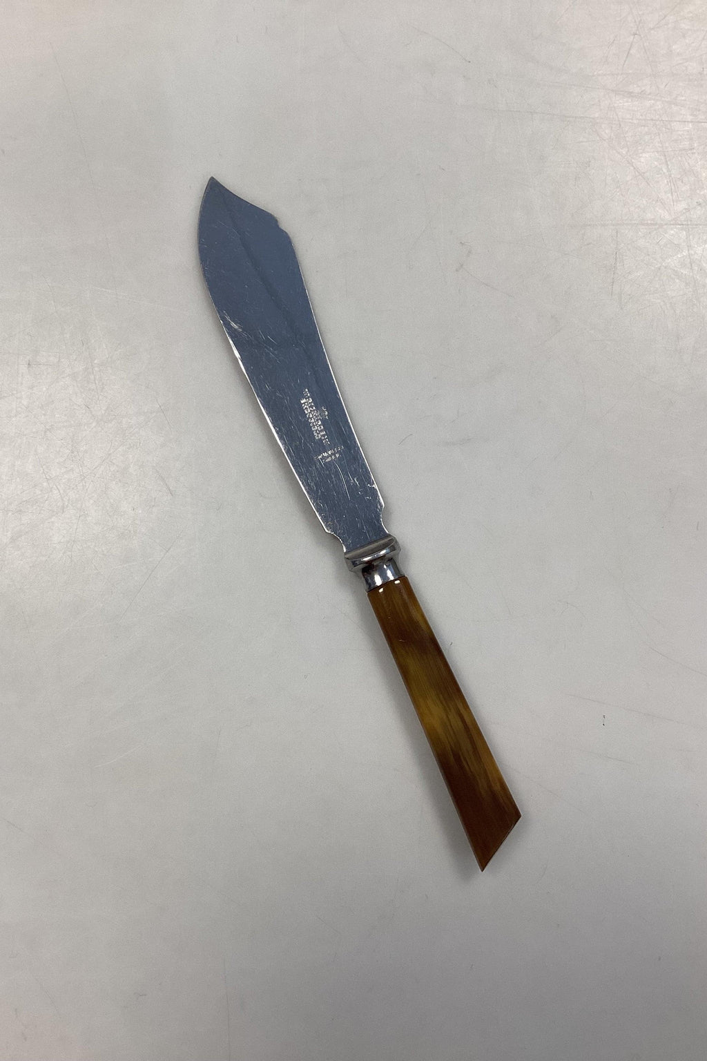 W. Richardson Sheffield Stainless Kagekniv med gyldenbrunt bakelitskaft. Måler 23,5 cm / 9,25 in. I rigtig fin stand.