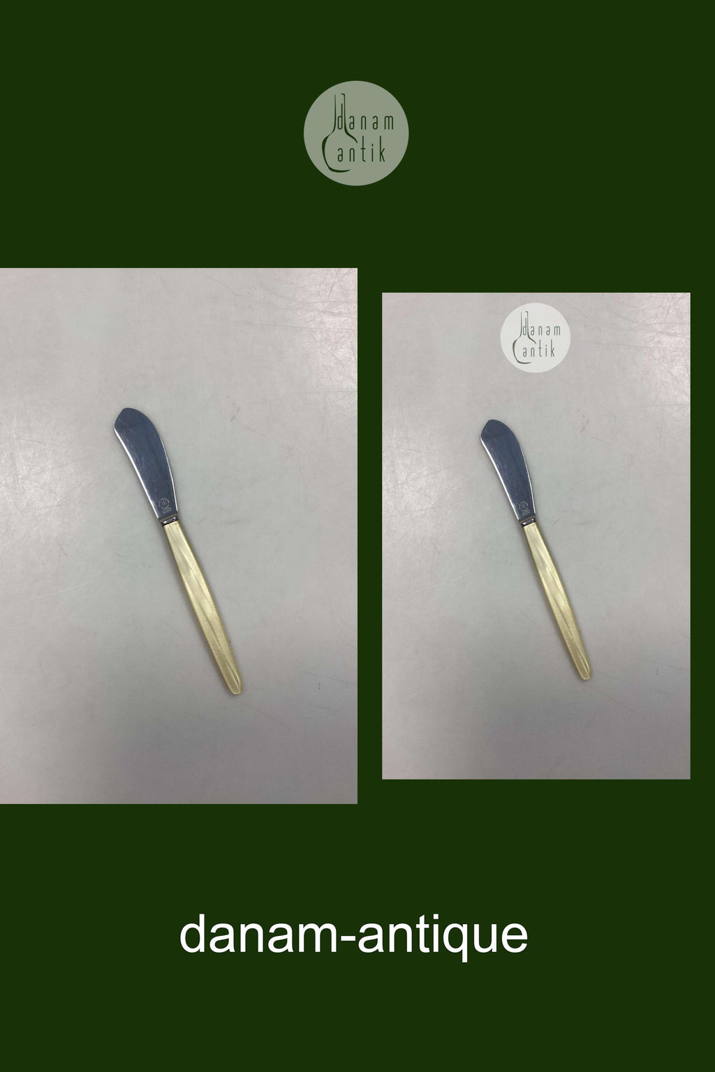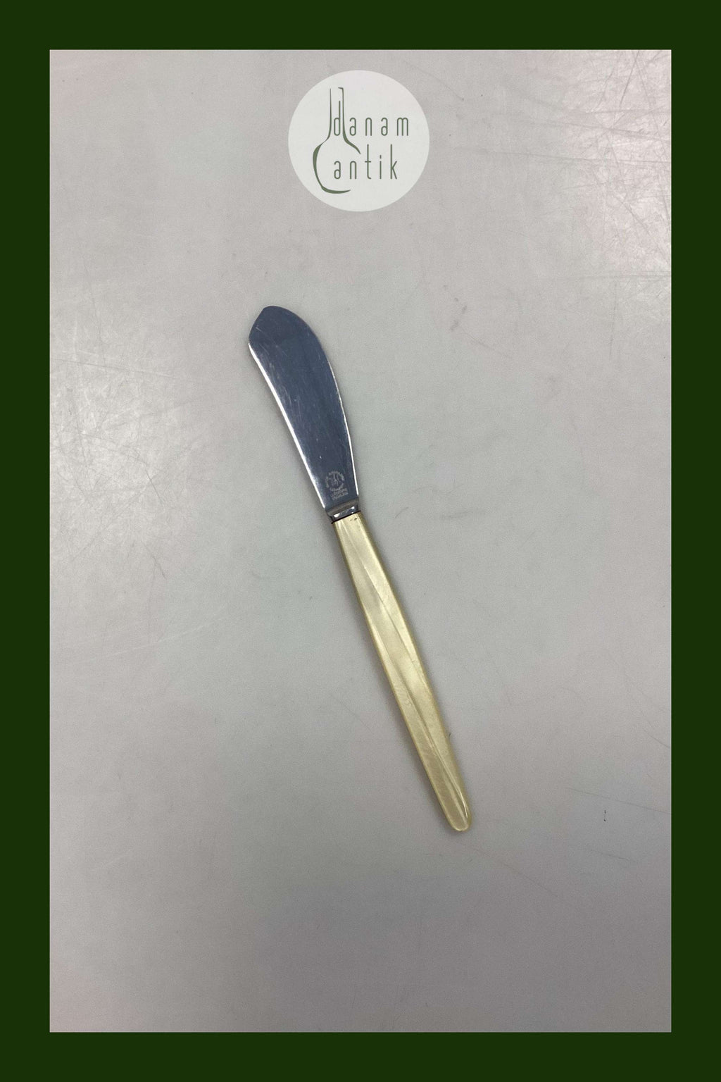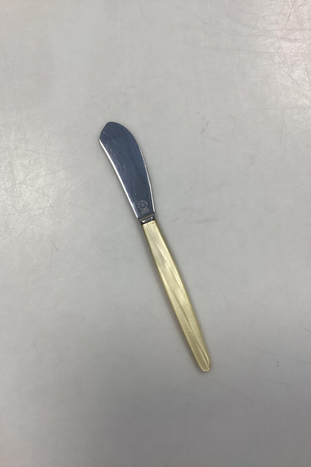 Lundtofte Smørkniv med lysegult perlemorsskaft i plast. I god stand.
