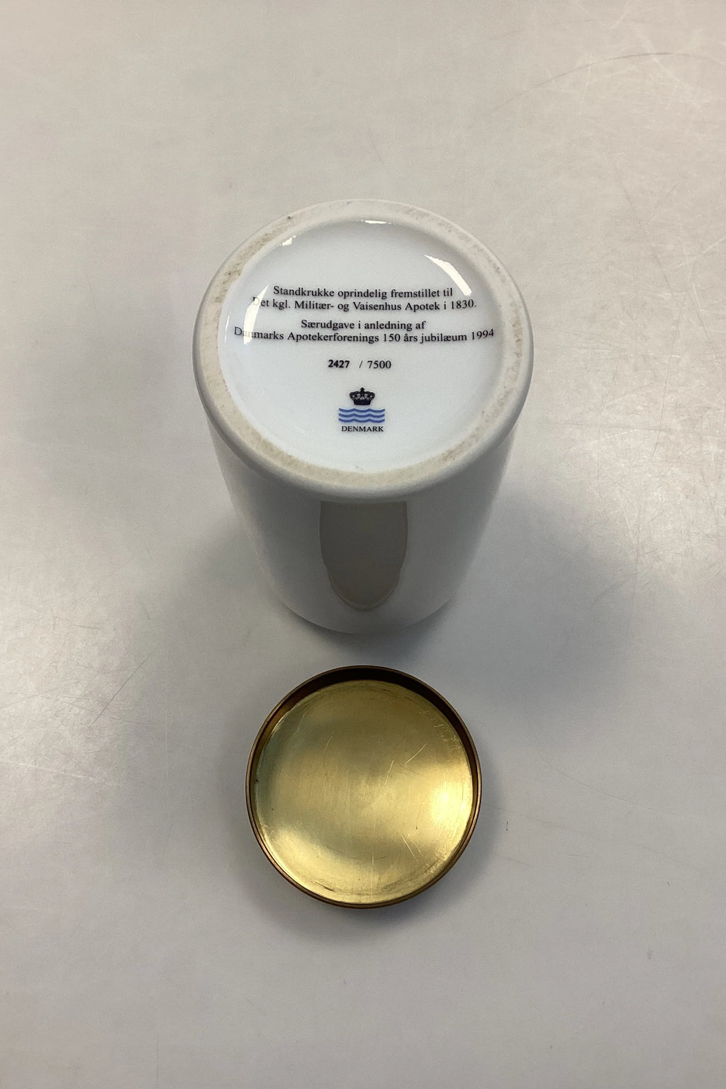 Royal Copenhagen Apotekerkrukke Crocus - Særudgave for Danmarks Apotekerforenings 150 års jubilæum i 1994. Standkrukke med messinglåg oprindelig fremstillet til Det kgl. Militær- og Vaisenhus Apotek i 1830. Eksemplar No. 2427 af 7500.